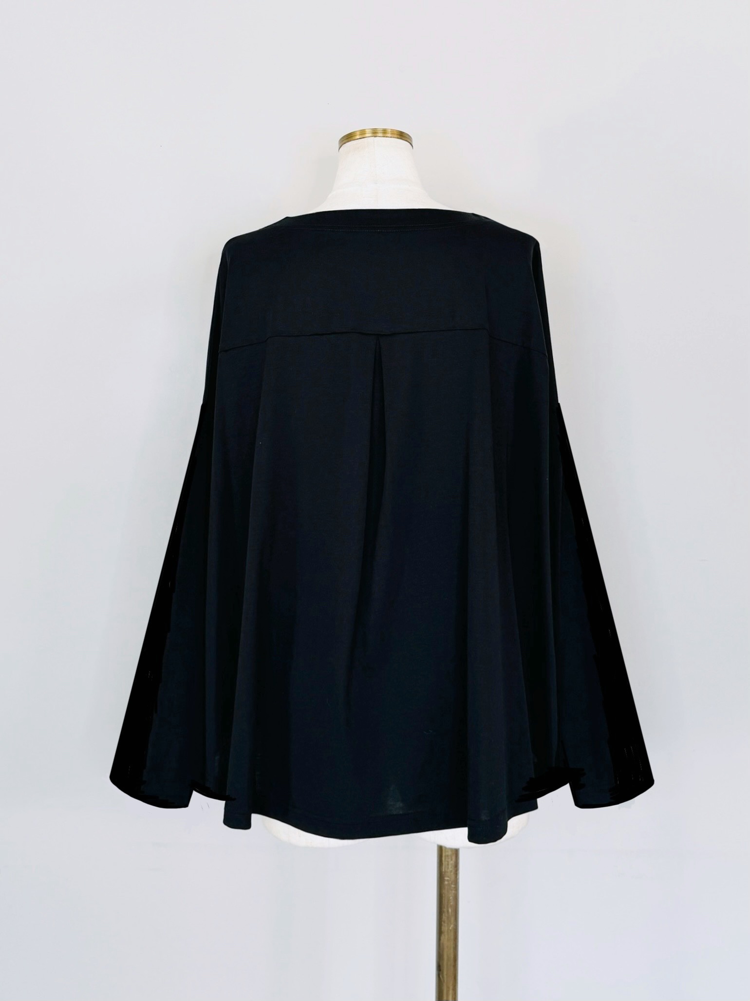立体タックとフレアシルエットで体型カバーも叶うバックタックフレアTシャツ。