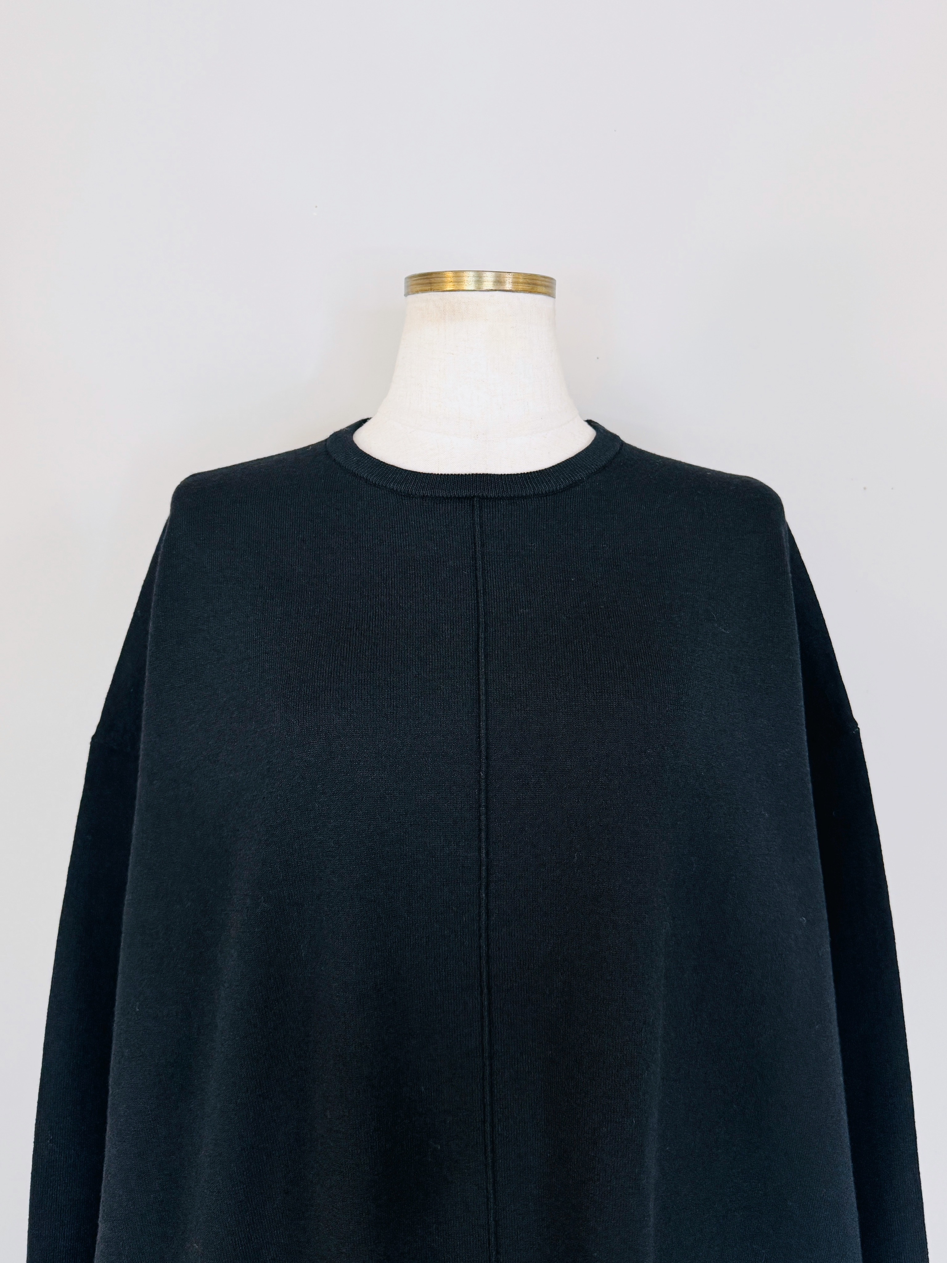 センターシームで縦ラインを協調してくれます。1枚でも決まるクルーネックのワンピース。
