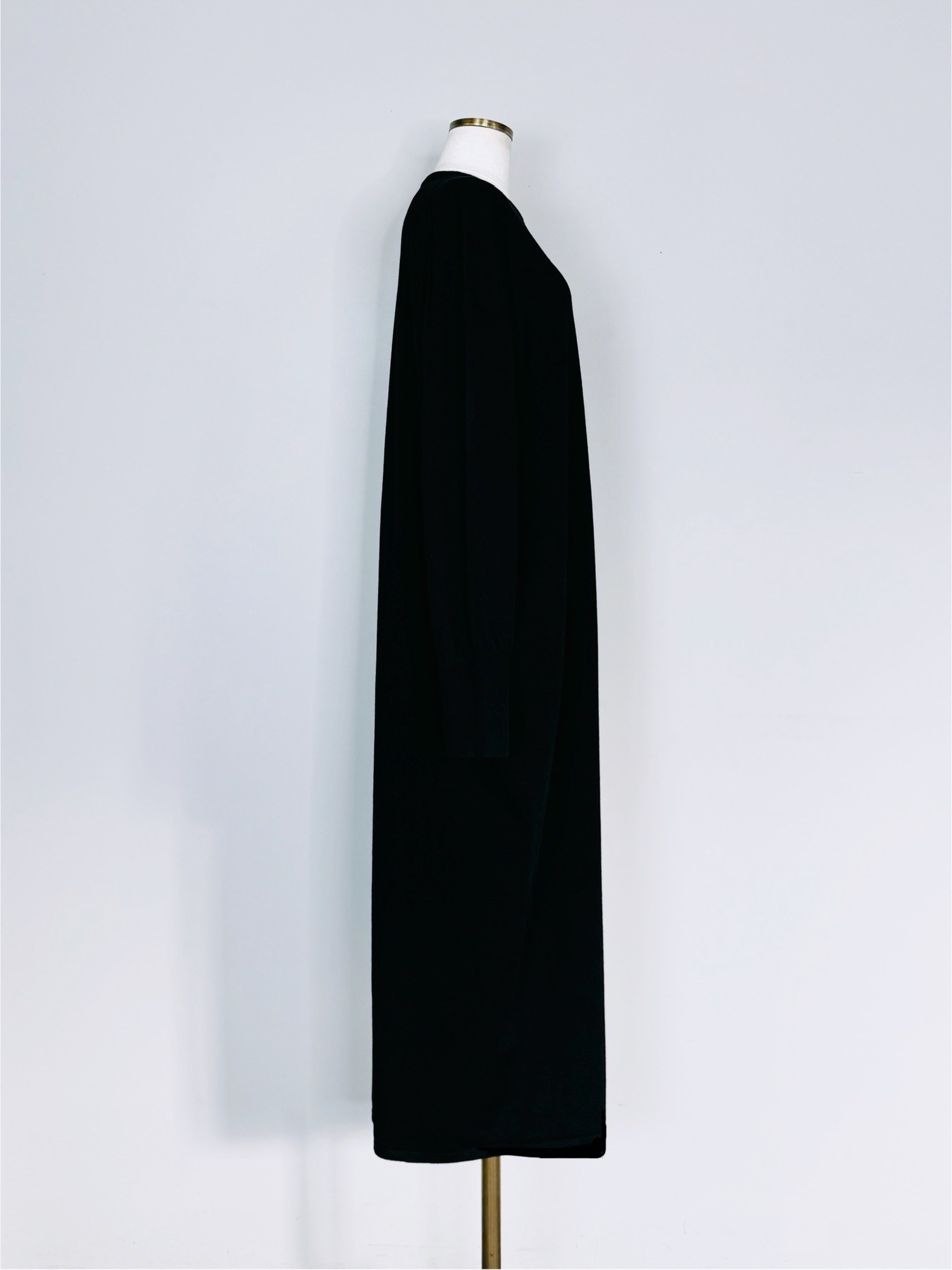 すっきりしたシルエットで、アウターなどのインナーとしても選びやすいワンピースです。