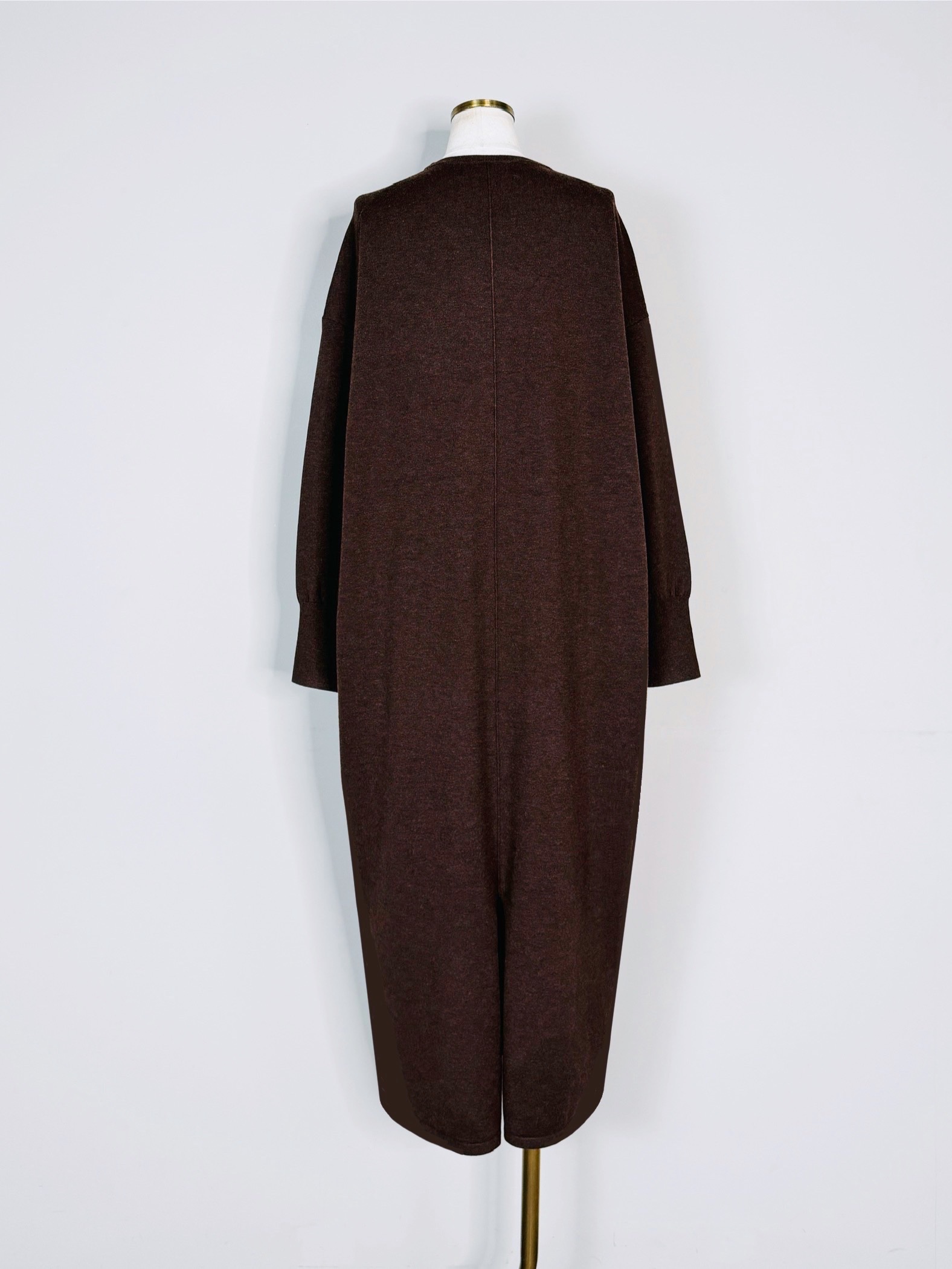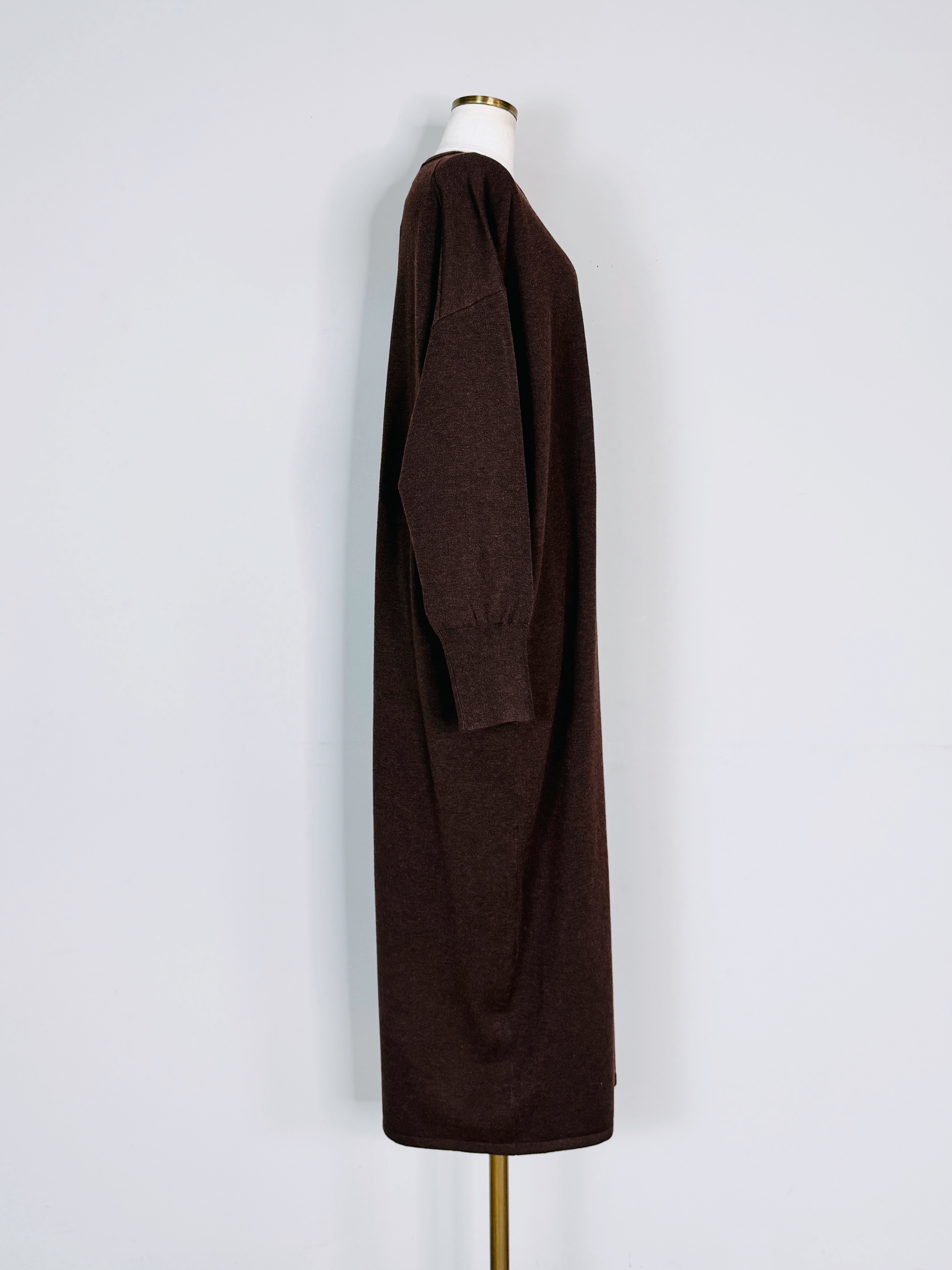1枚で決まるようなすっきり見えする万能ニットワンピース。