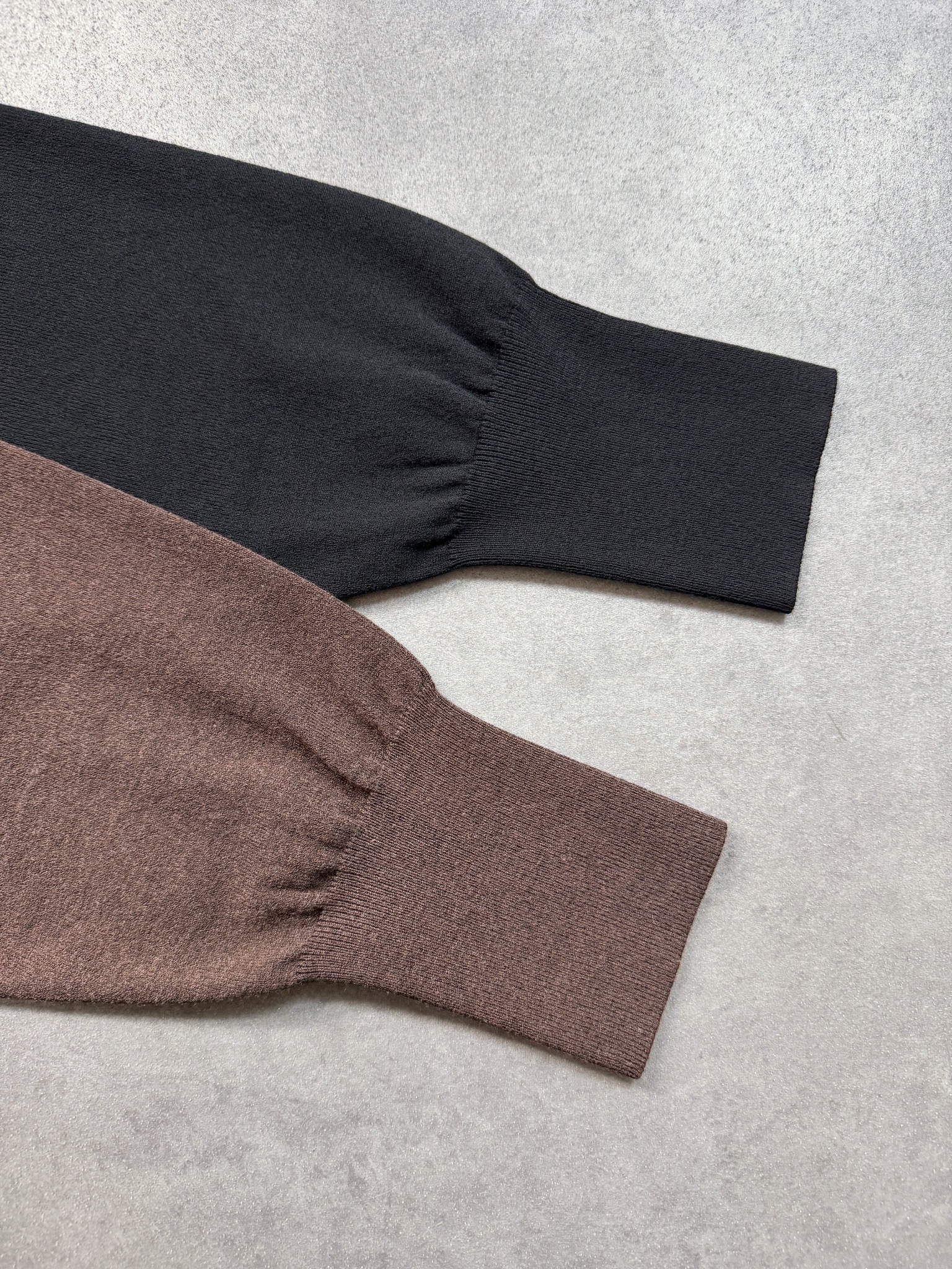 袖口のリブをやや長めに設定し、メリハリのある袖回りにしました。