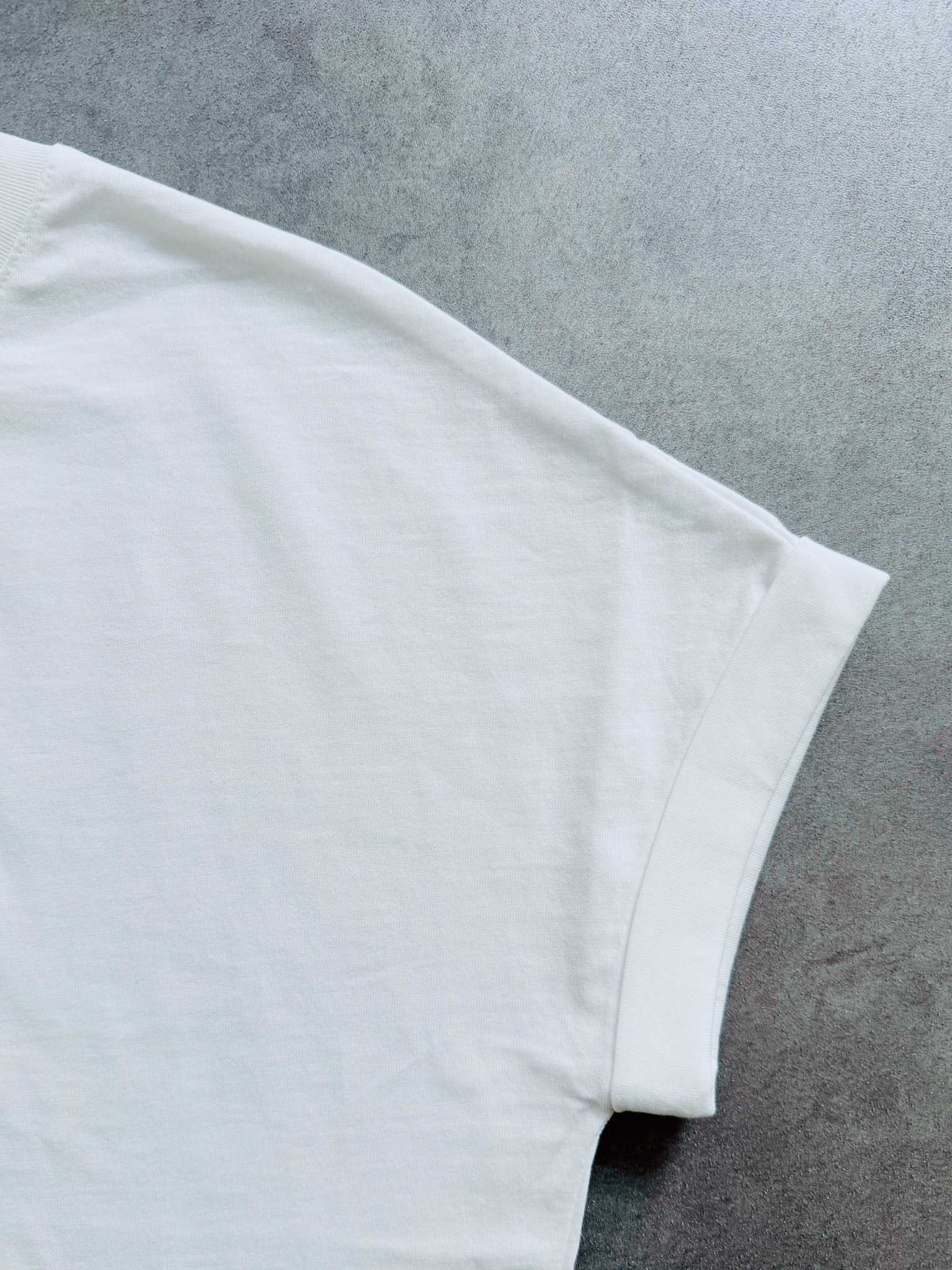 センターバックに大胆なスリットを施したロールアップTシャツ。