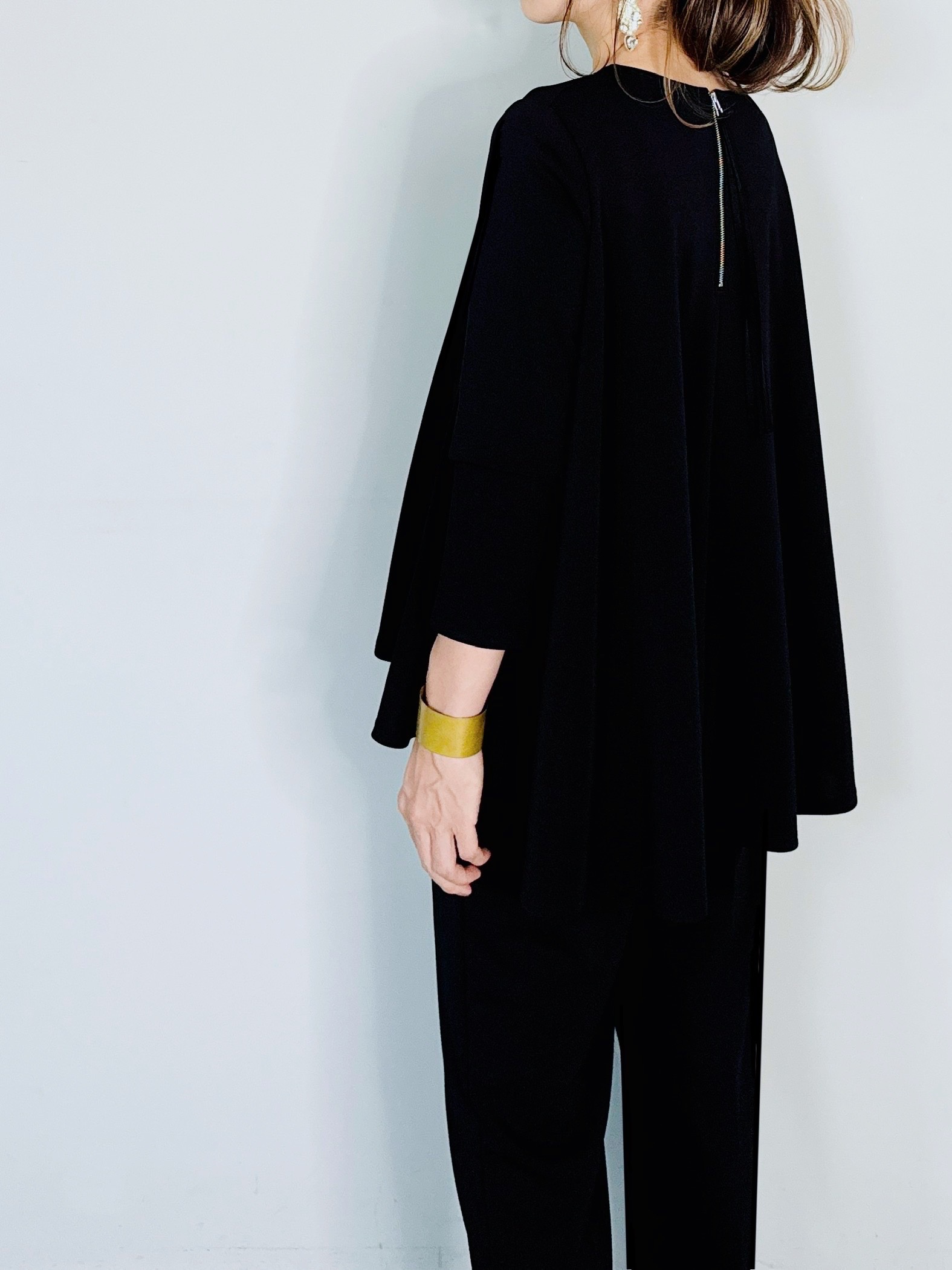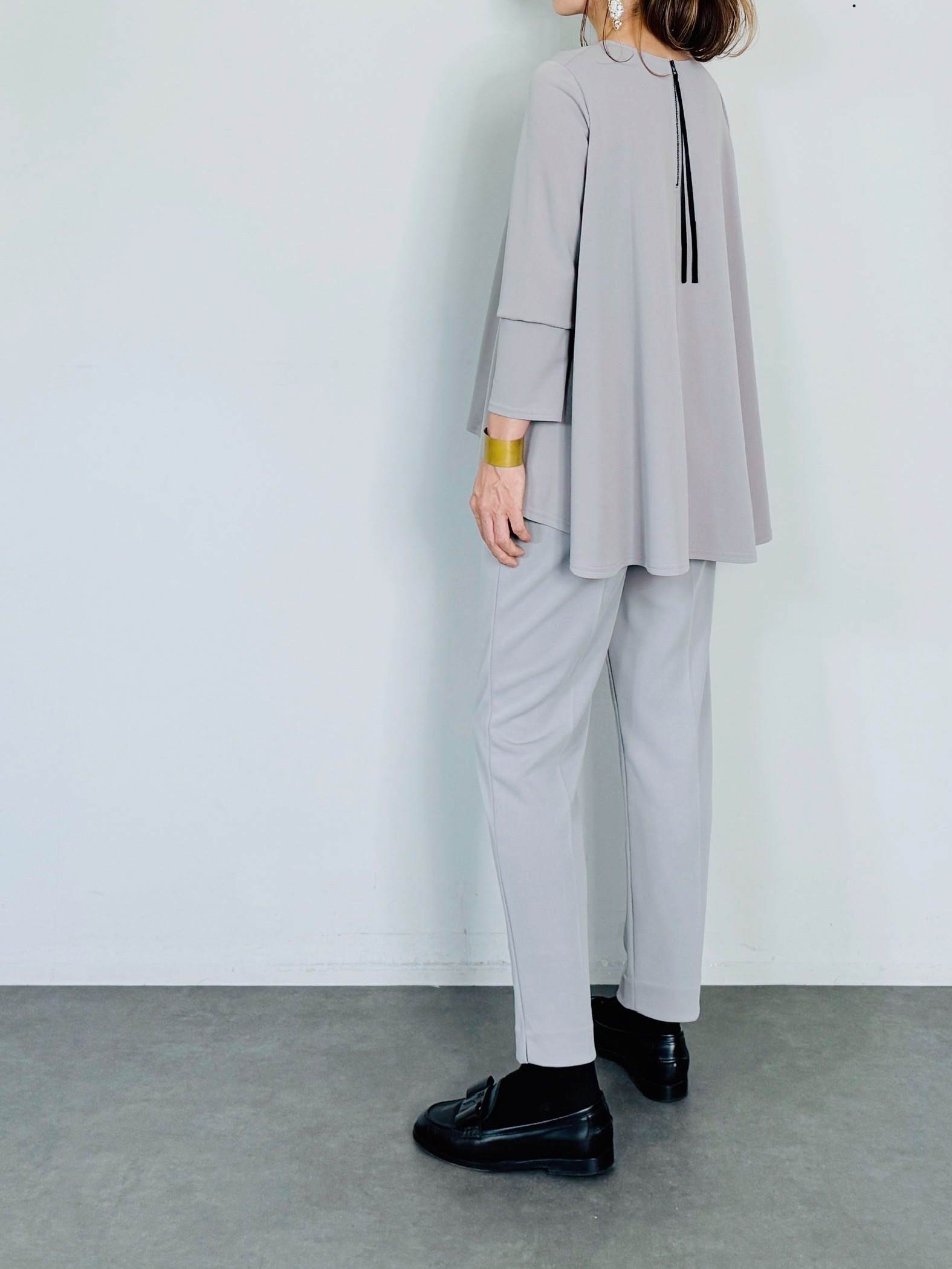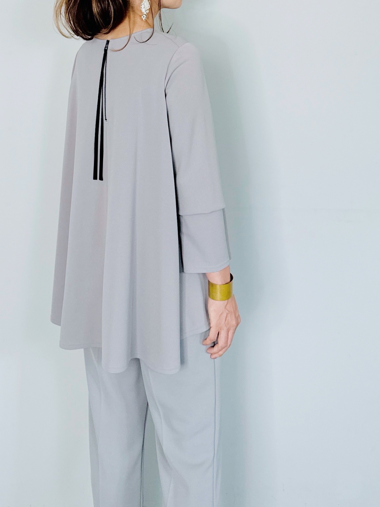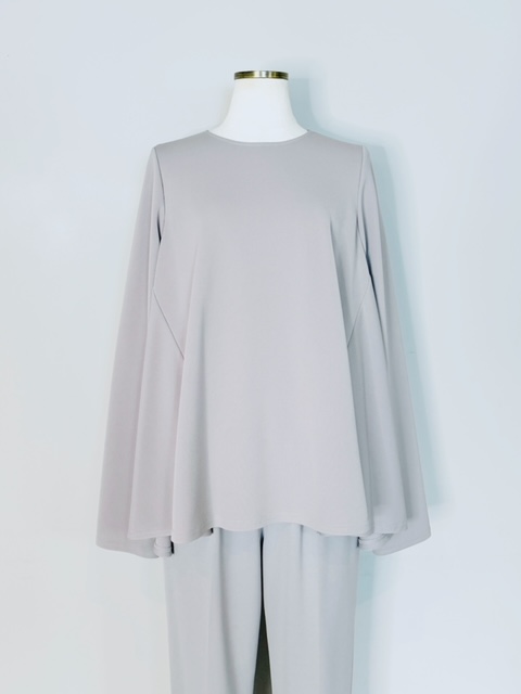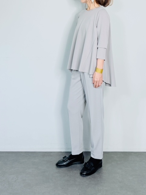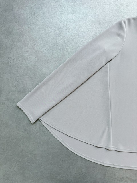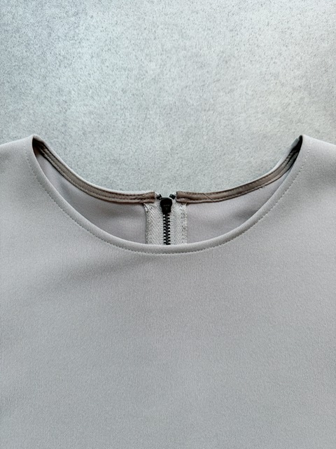 バックのセンタージップとフレアーラインが印象的なポンチブラウス。