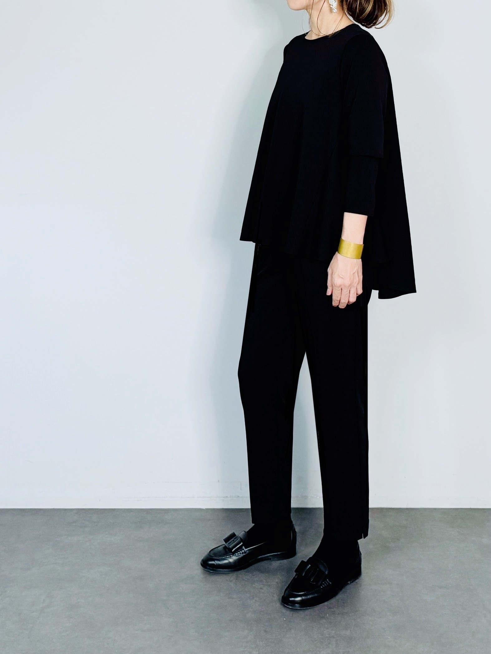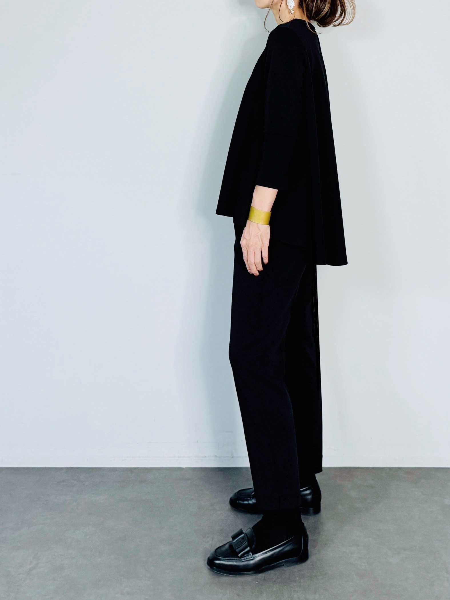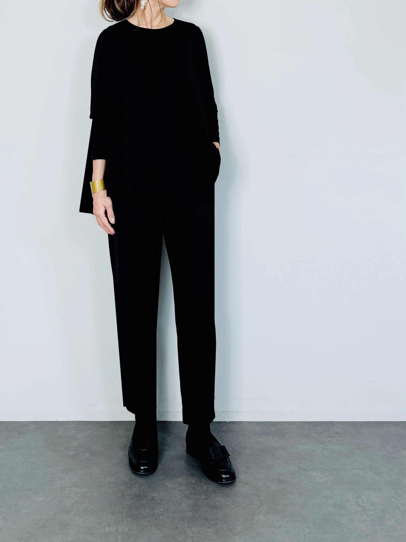 1枚で着るのはもちろん、ジャケットのインナーにも◎。パンツも種類を選ばず幅広くマッチします。