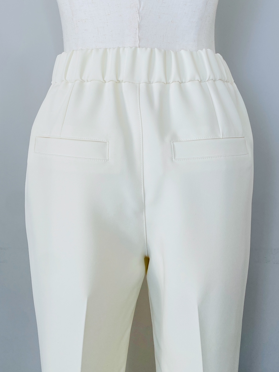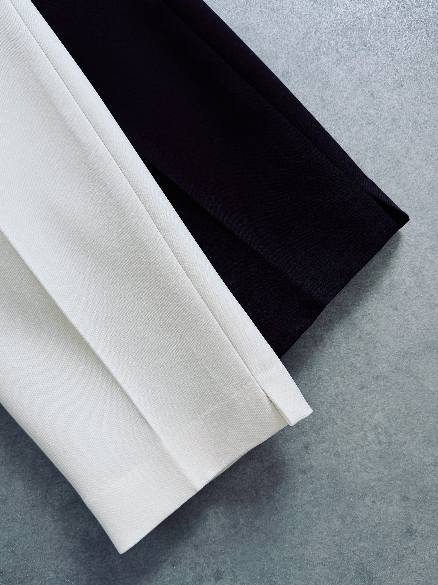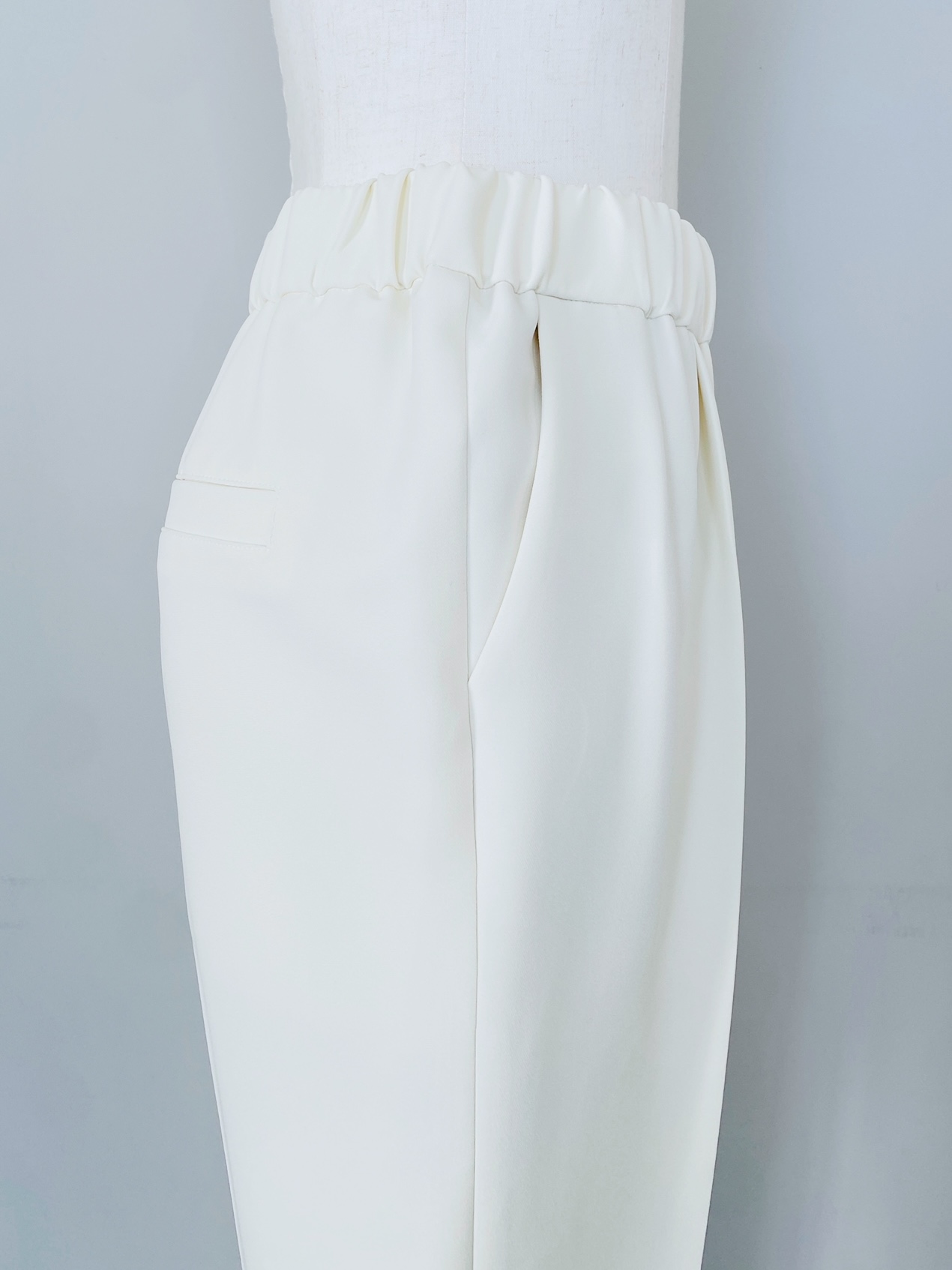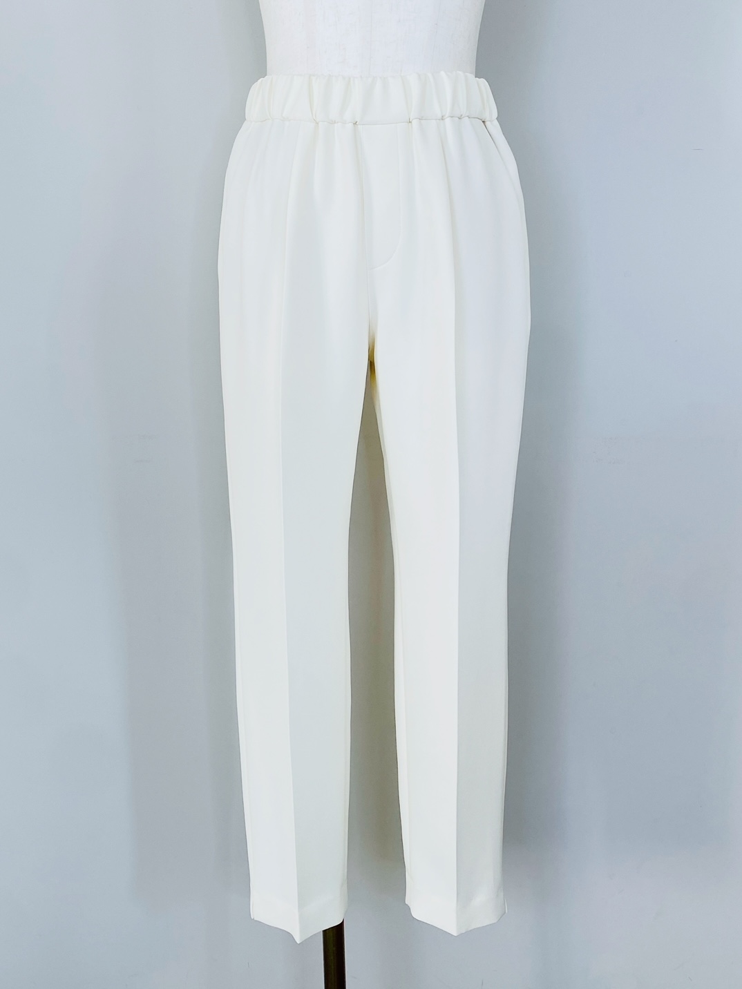 フロントタックとセンタープレスを施し、裾にかけては自然に細くなるすっきりシルエット。
