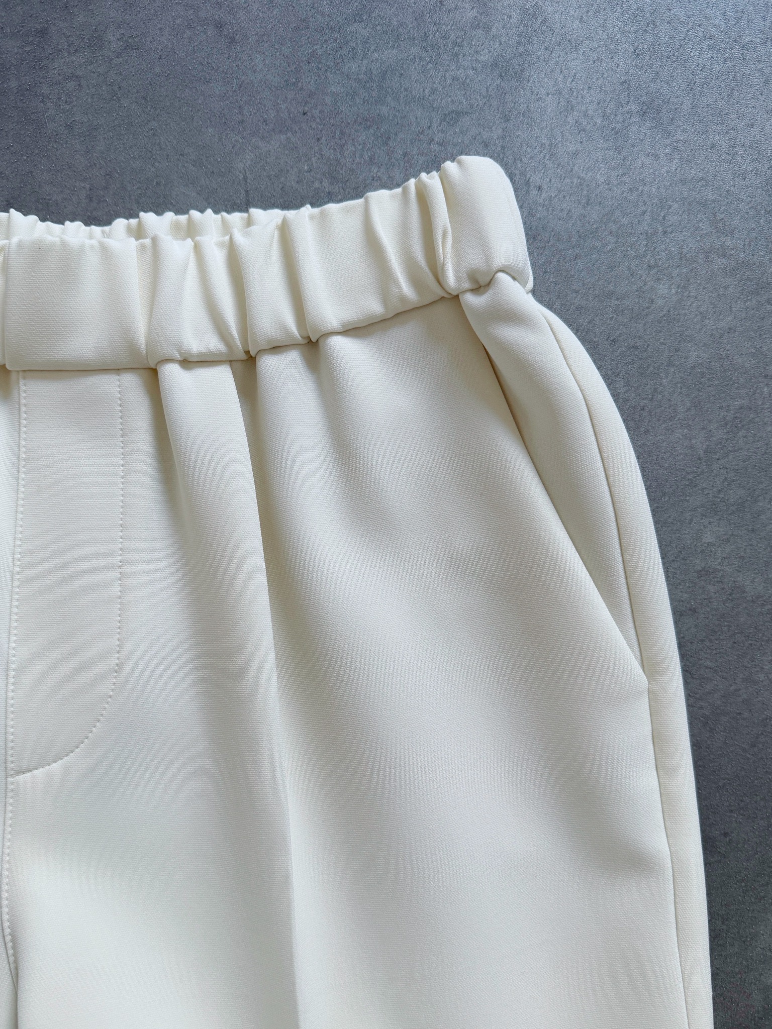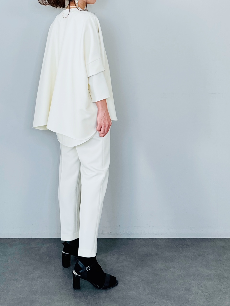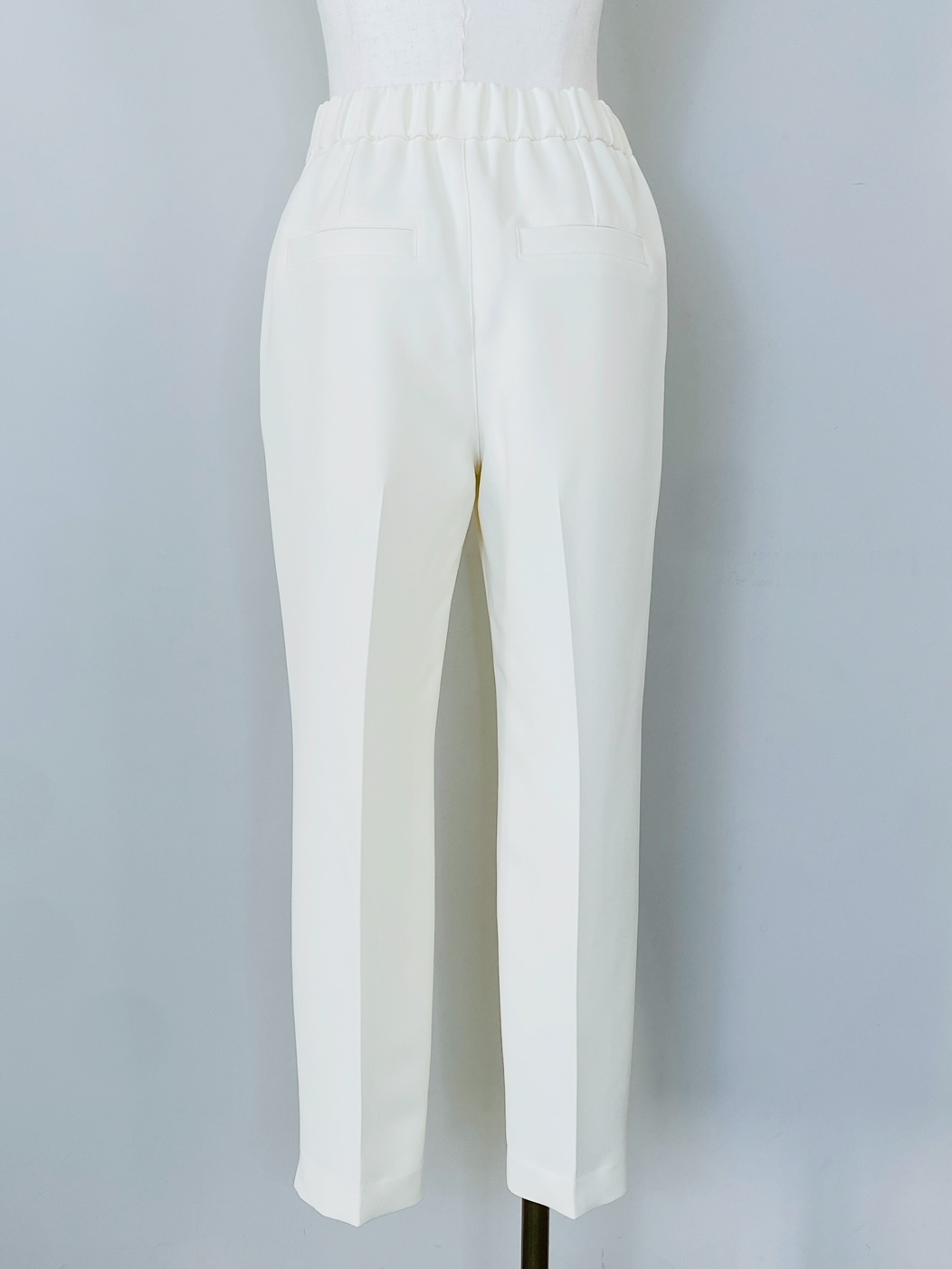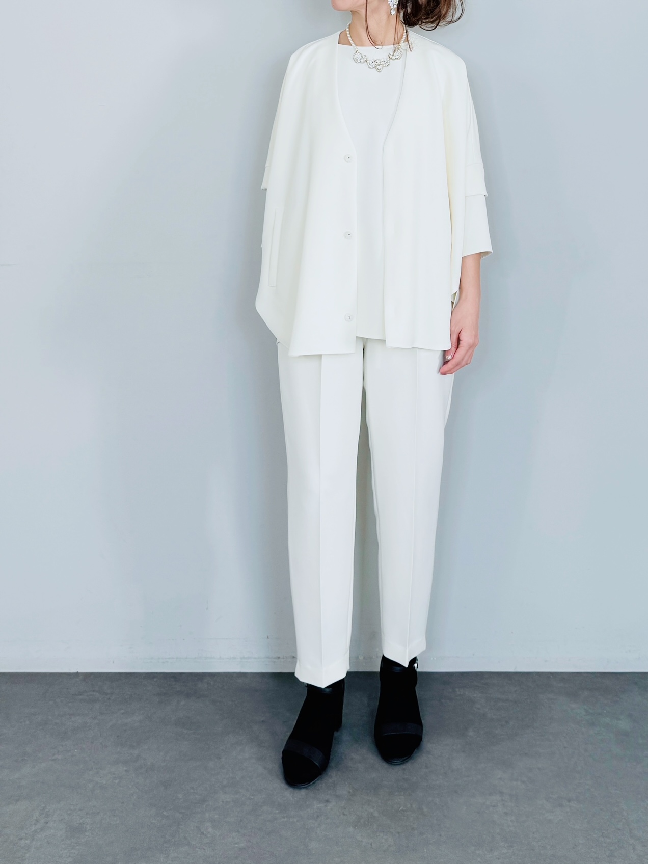 フロントタックとセンタープレスを施し、裾にかけては自然に細くなるすっきりシルエット。
