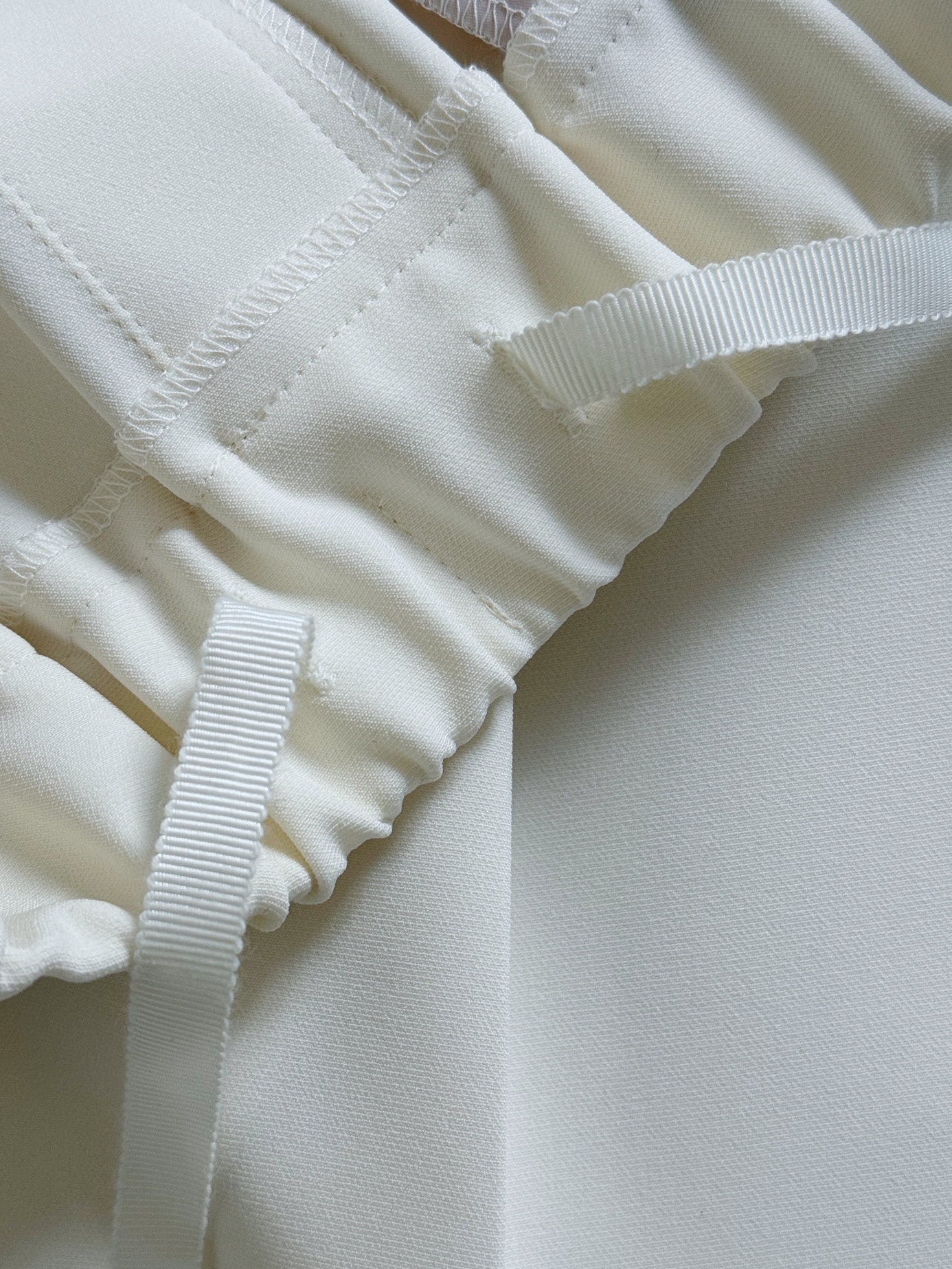 ウエストはゴムを取り入れていますが、フロントはインスタイルにも対応するディテールです。