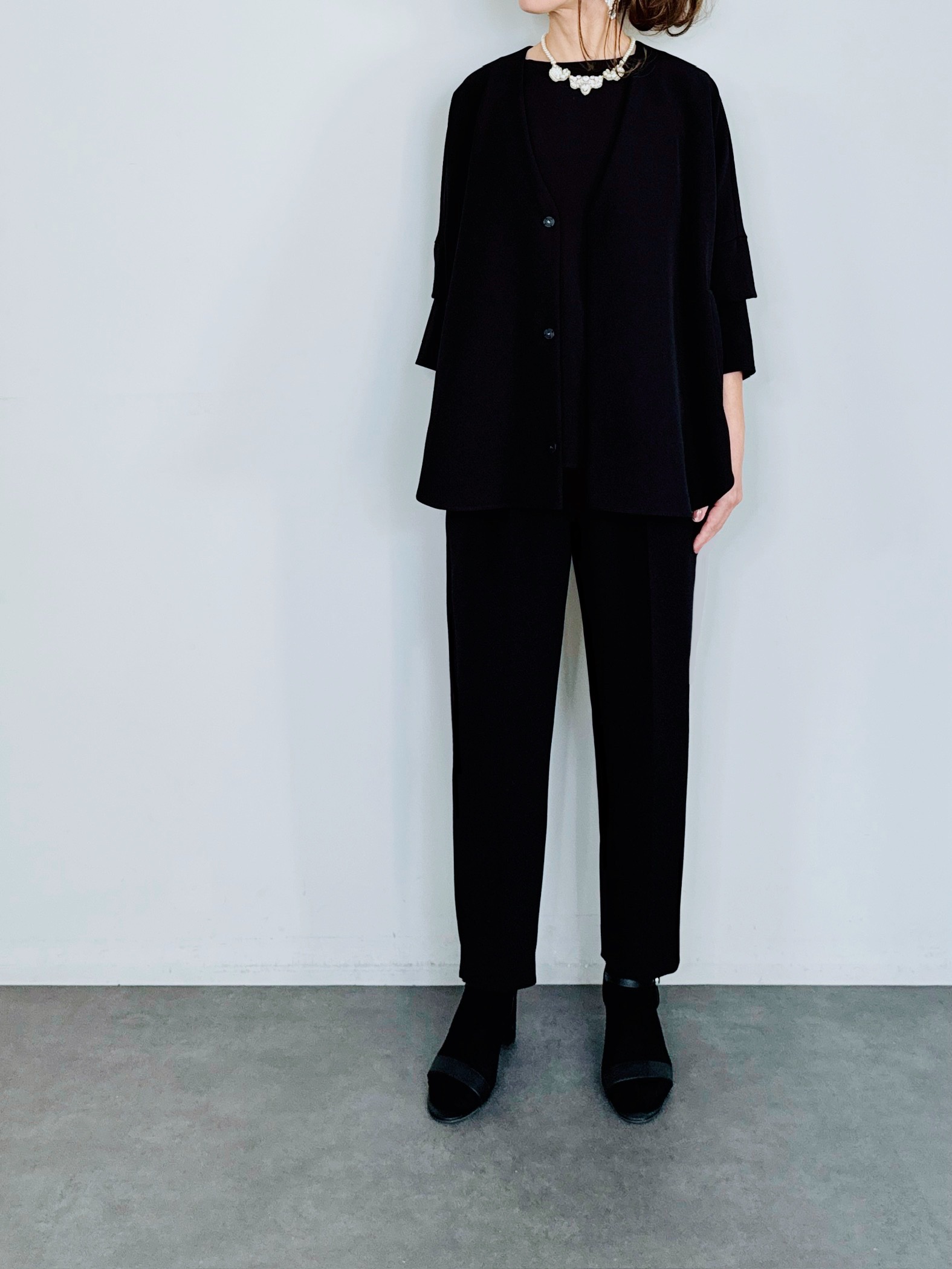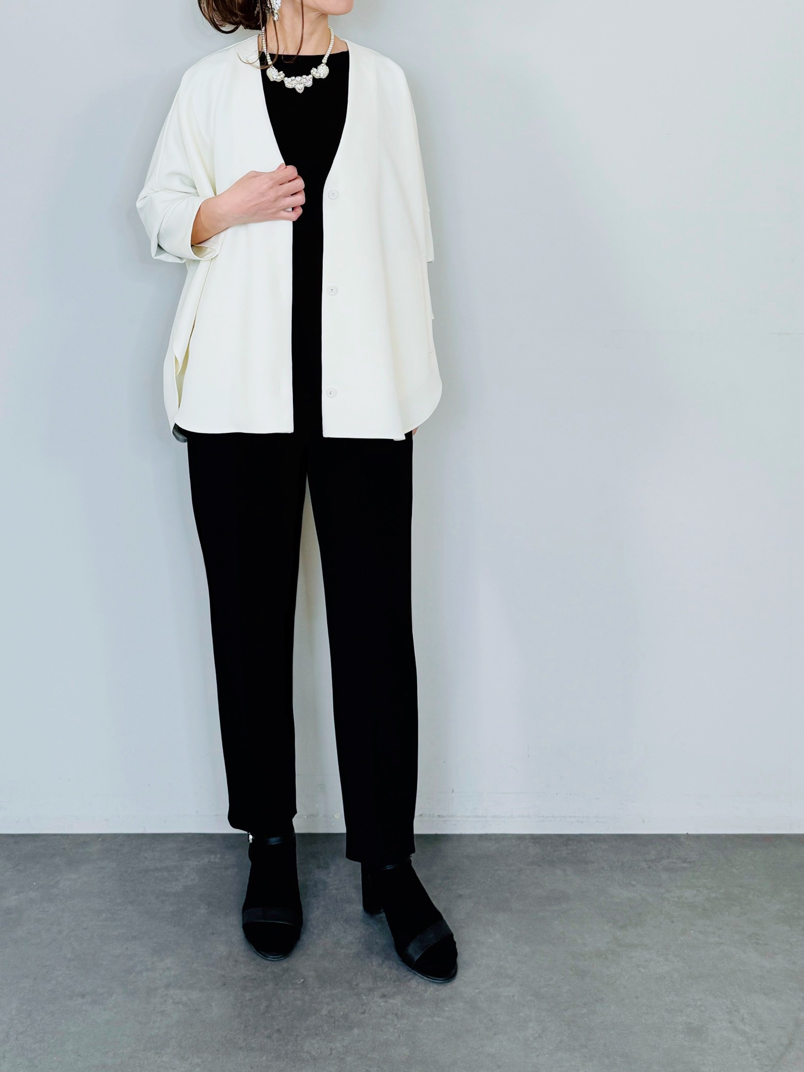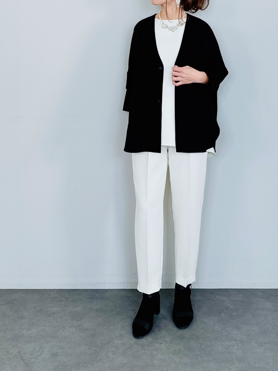 スタイリングによってきれい目にもカジュアルにも見せられるのが魅力です。
