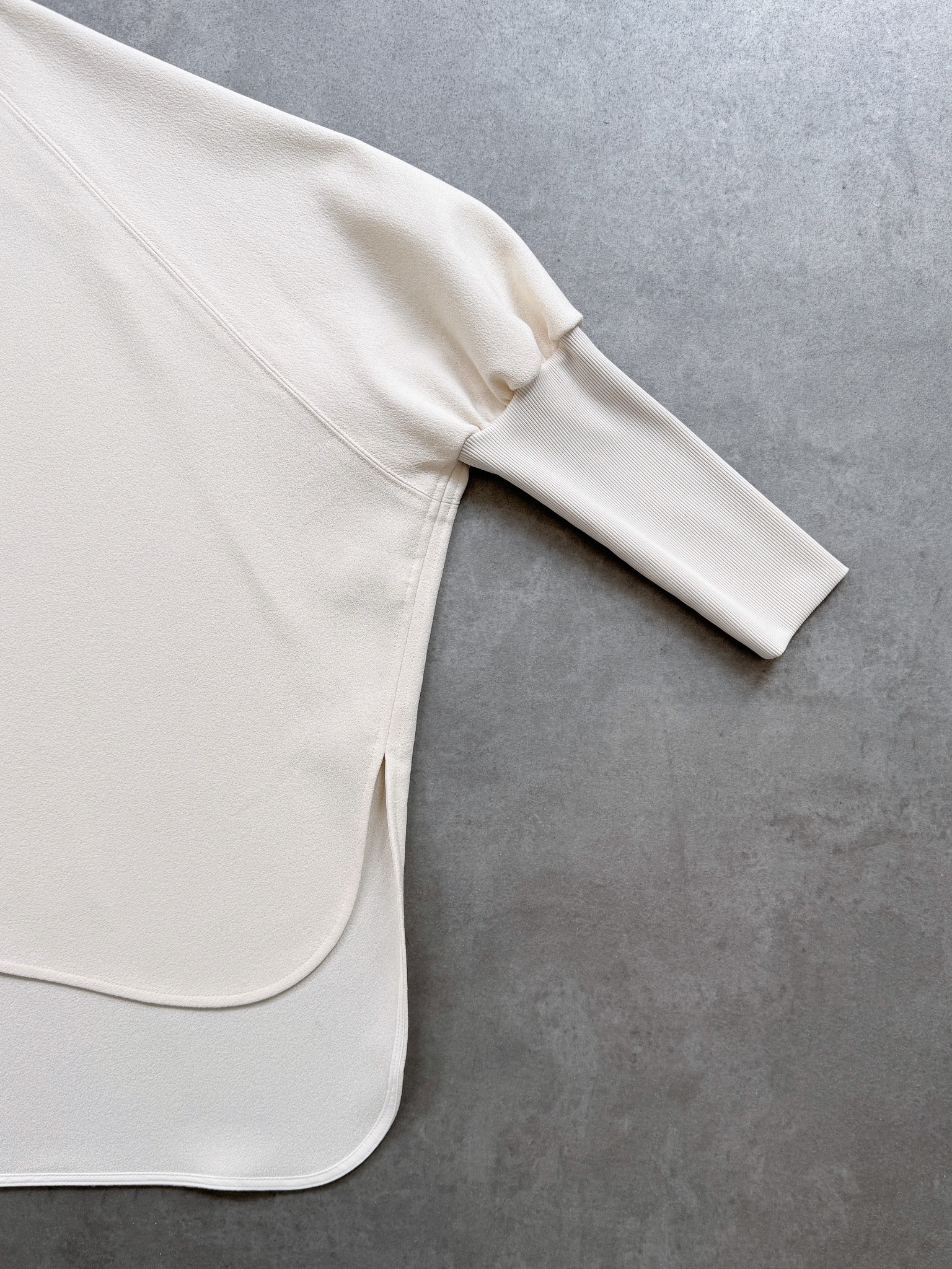 ワイドなシルエットが抜け感を演出してくれるガゼットジョーゼット素材のトップス。