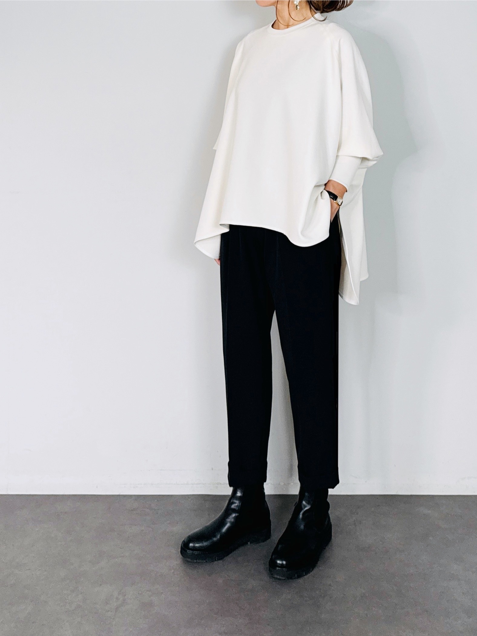 大きくとった身幅、袖のリブを長めにデザインすることで、トレンド感のある1着に仕上げました。