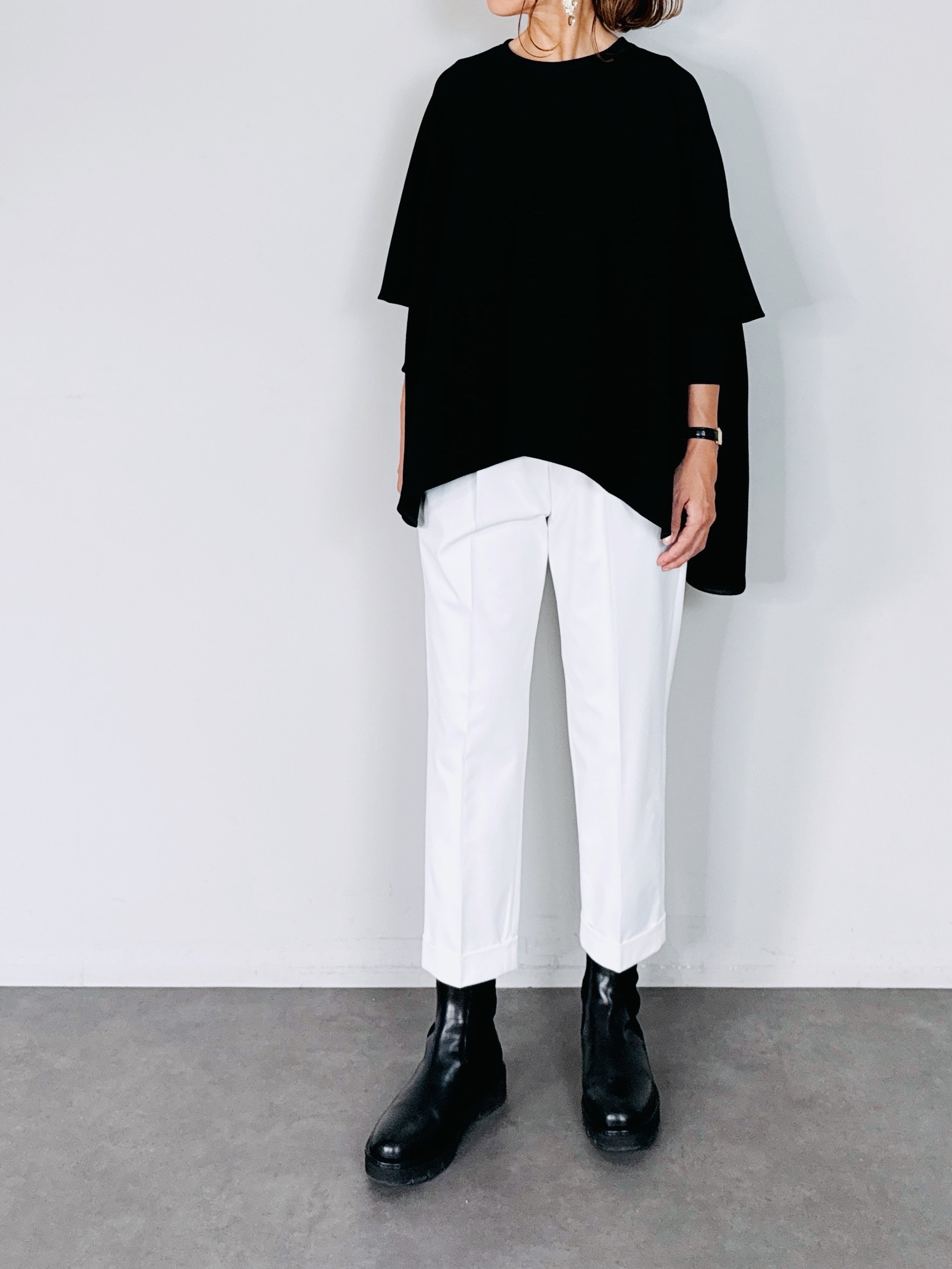 デニムやワイドパンツなどのカジュアルなパンツからスラックスなどの綺麗めなパンツまで、様々なボトムスと合わせやすくデイリーユースに◎