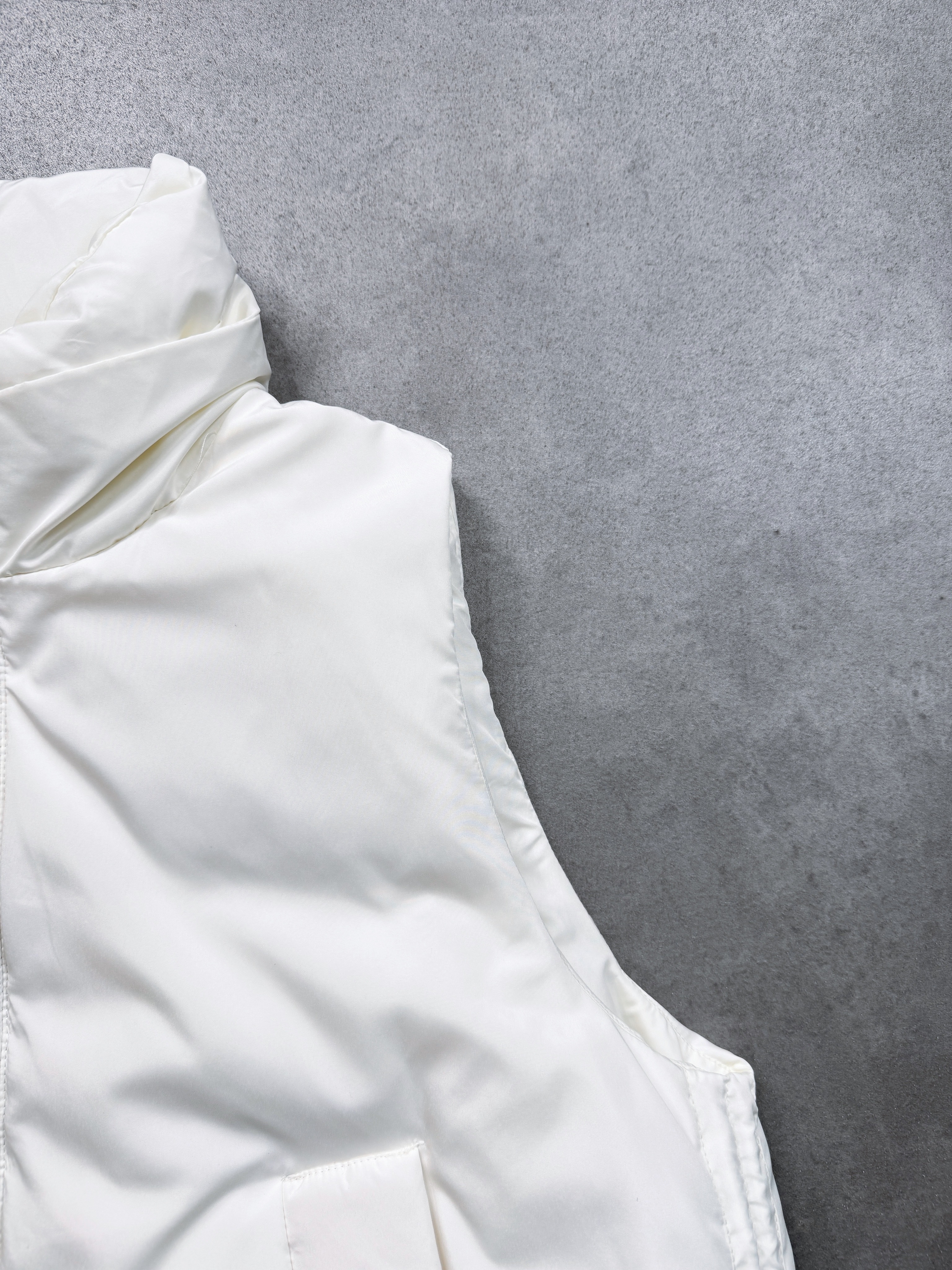 サイドドロストがポイントのスタンドダウンベスト。