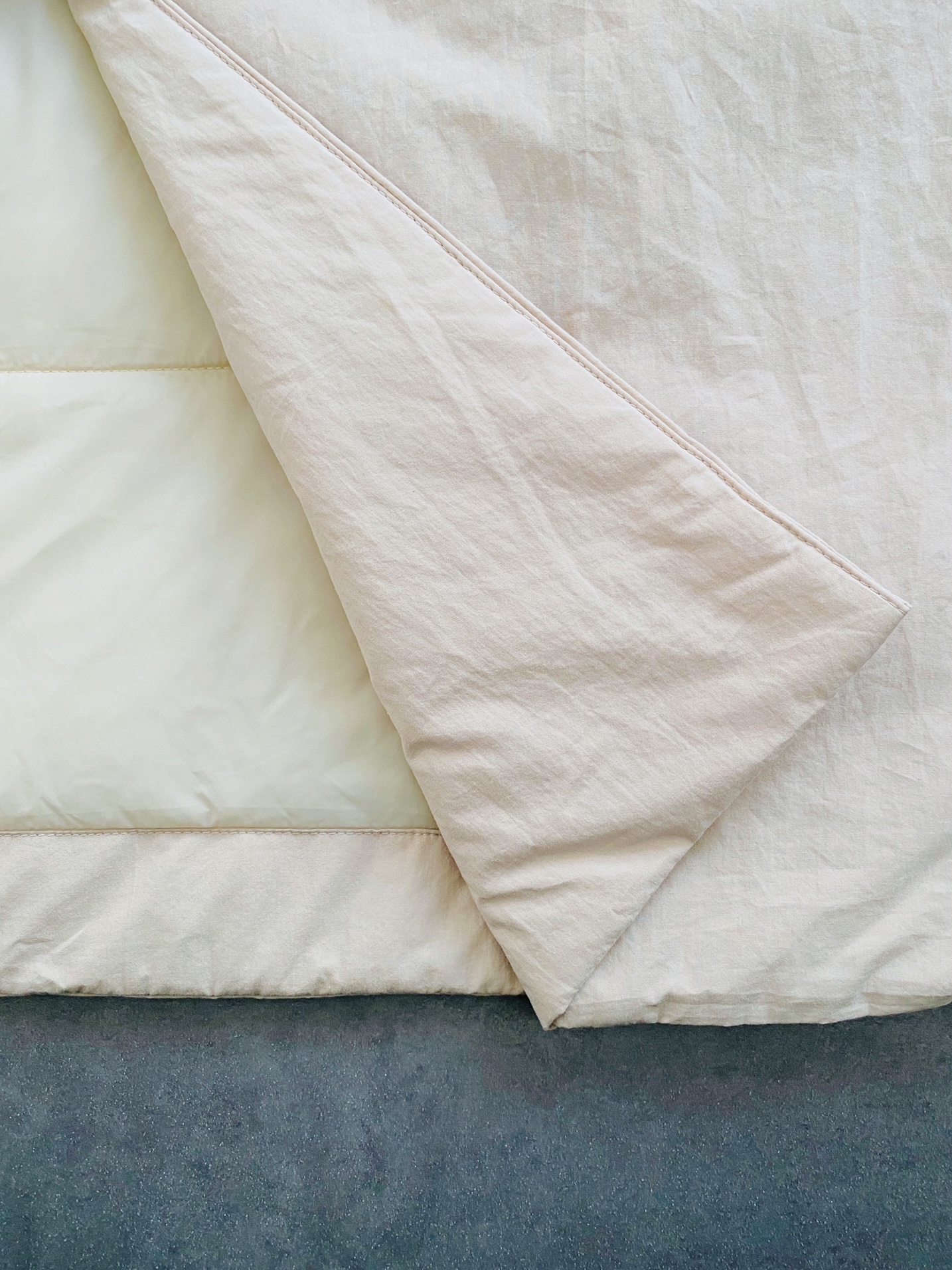 あえてワッシャー加工が施されたナチュラルな風合いの生地を使用し、優しい雰囲気に仕上げました。
