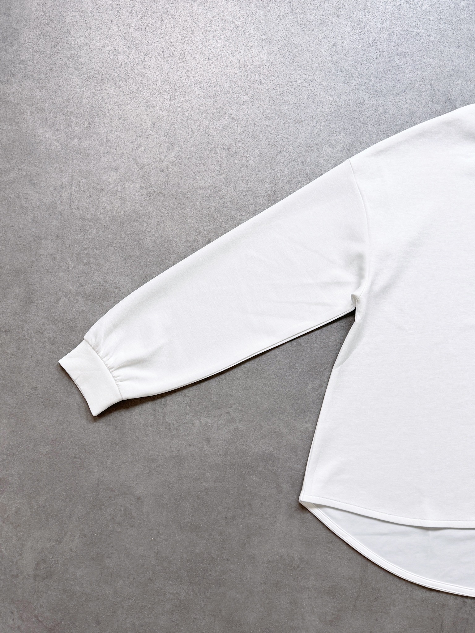 裾がラウンドしており、抜け感を演出してくれるので、バランスよくワイドパンツやロングスカートとのレイヤードスタイルをお楽しみいただけます。