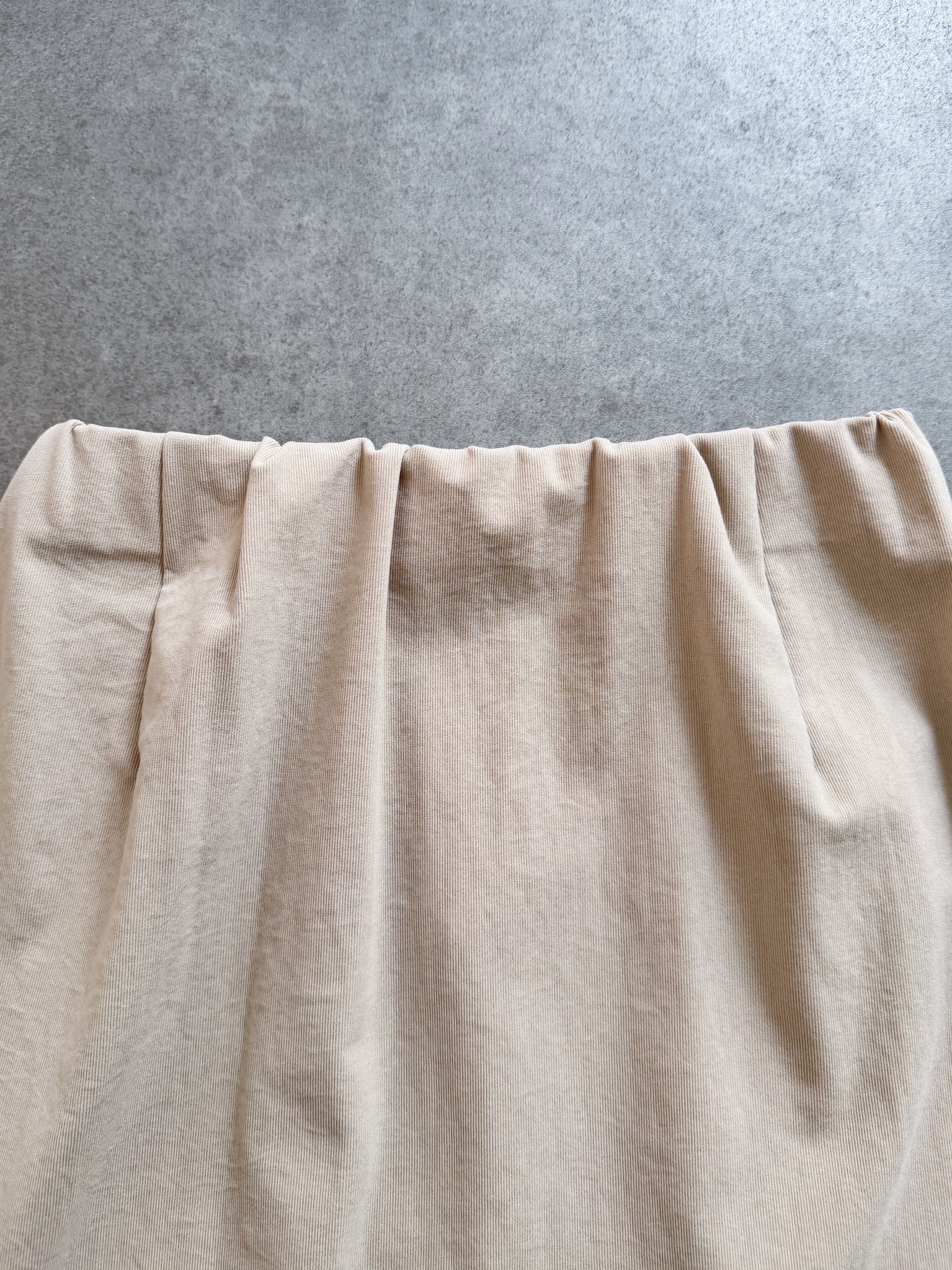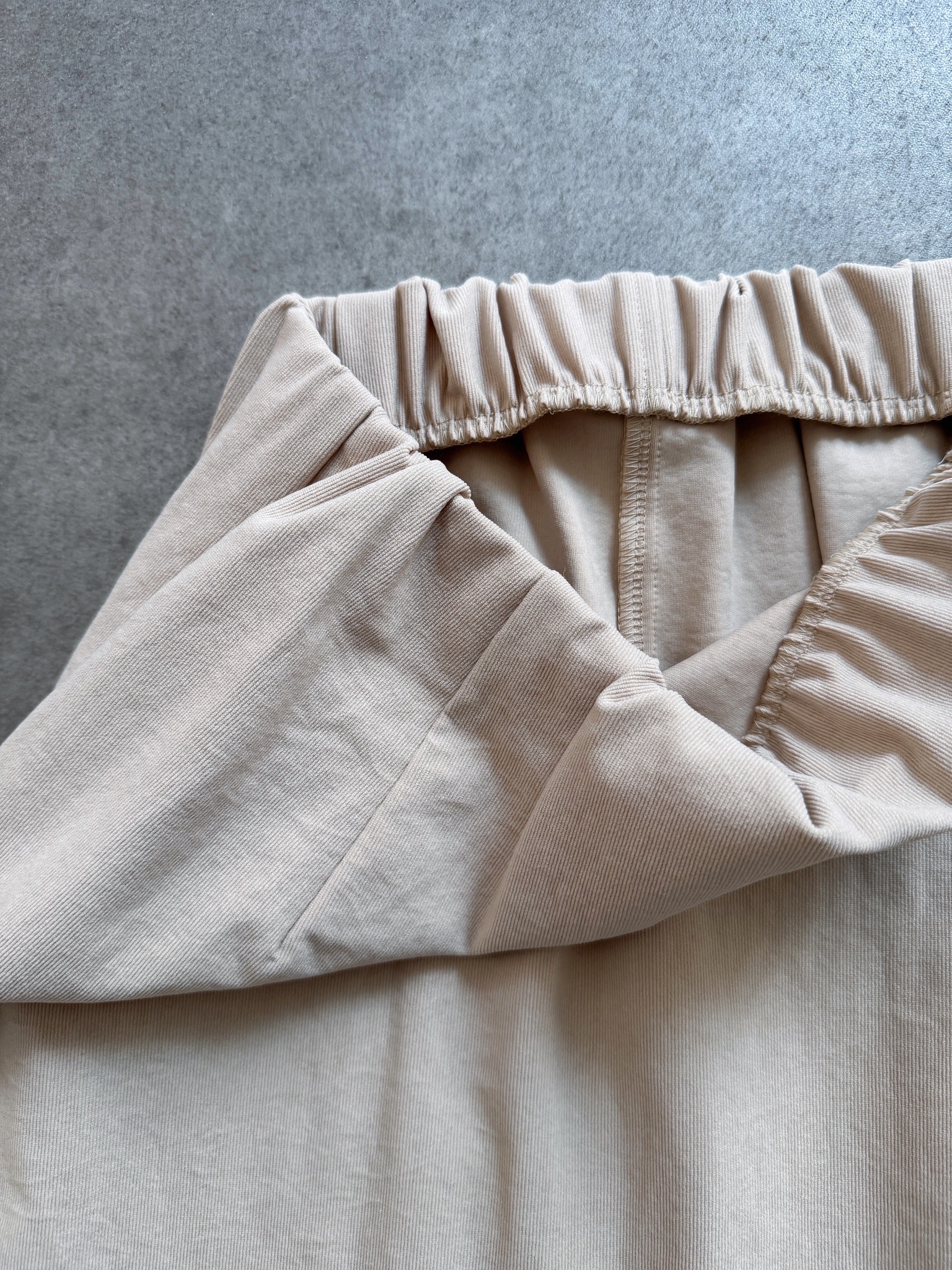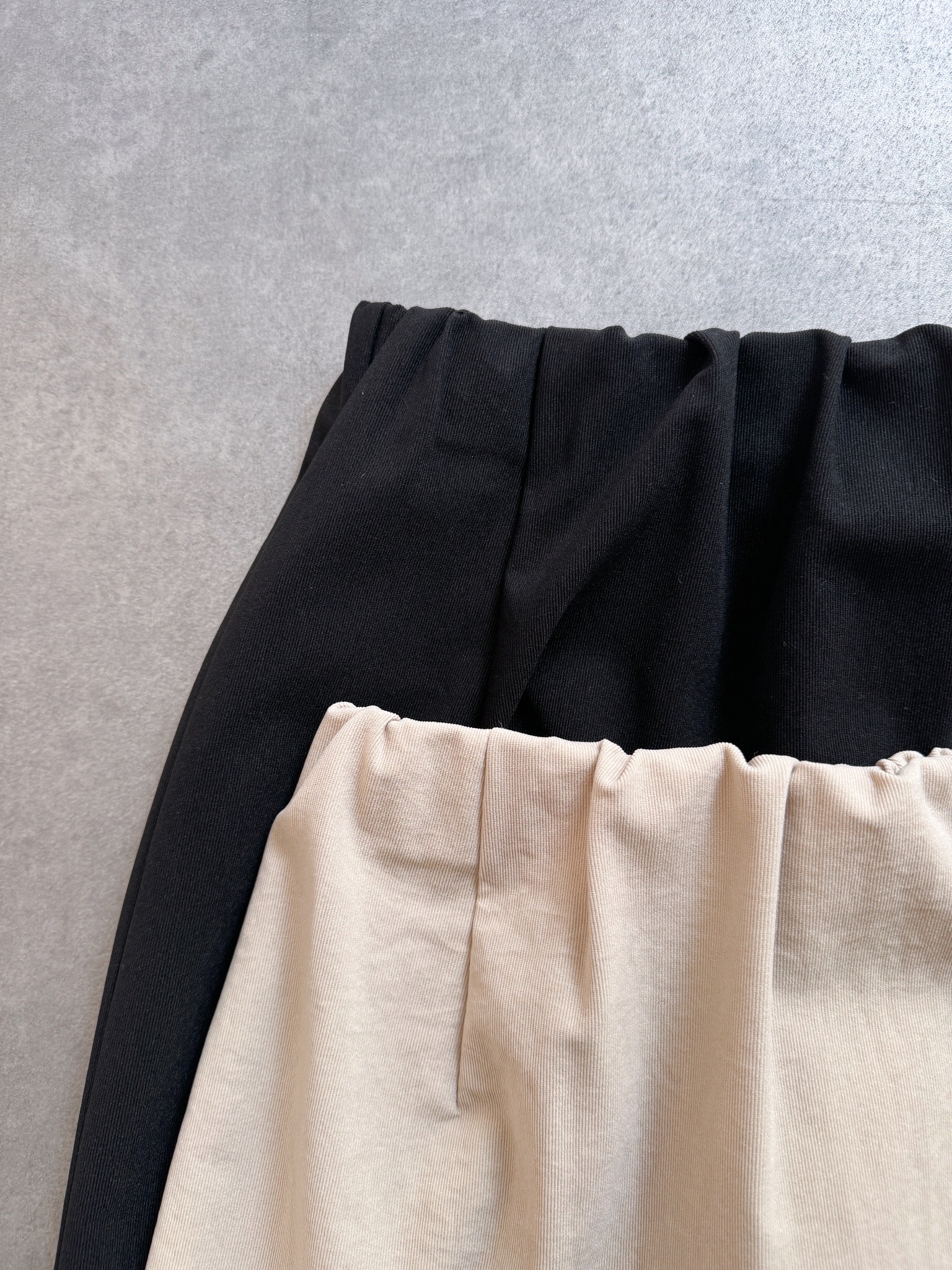 ウエストゴム仕様で、気負わずにリラックスして着用可能。