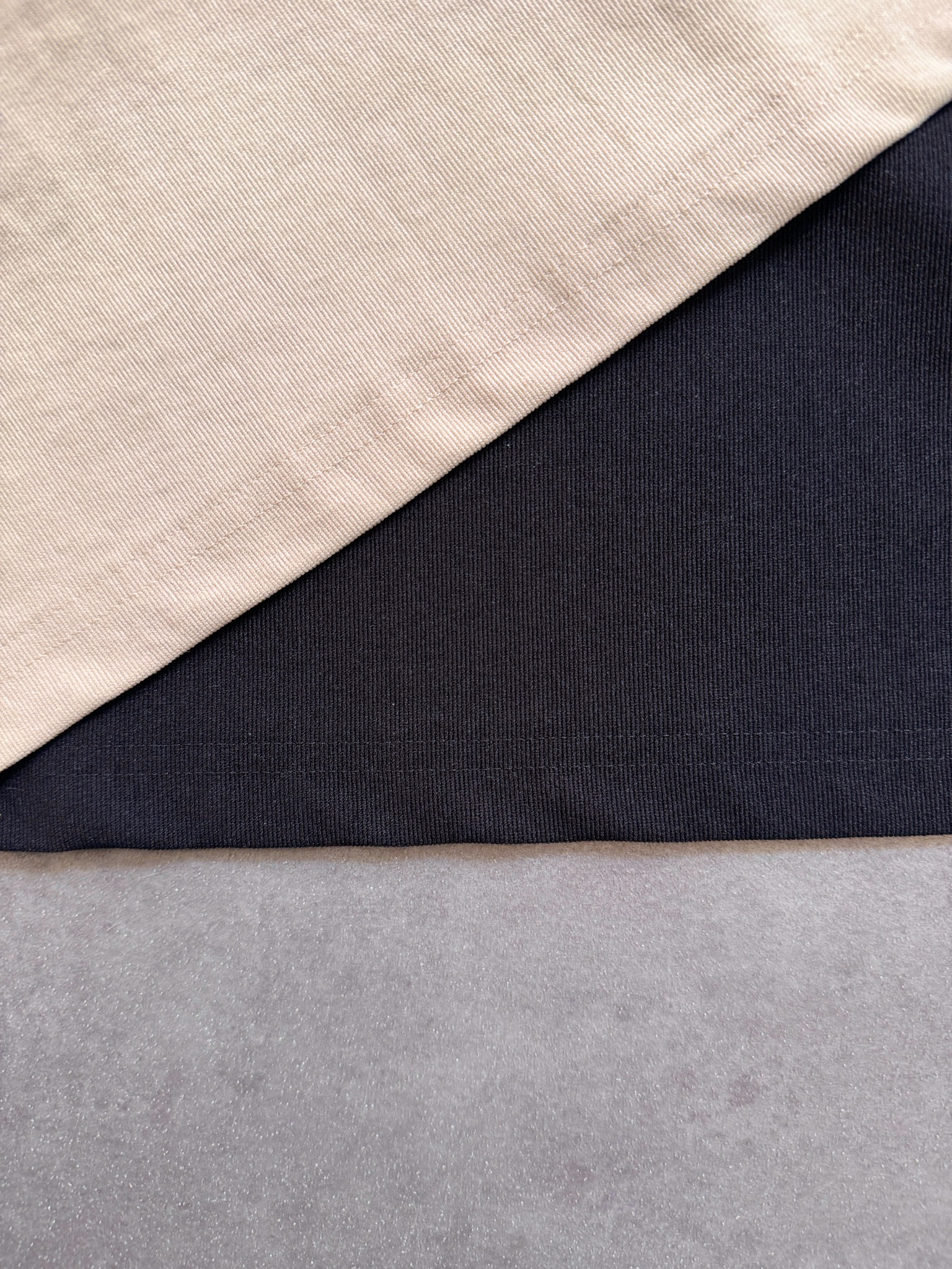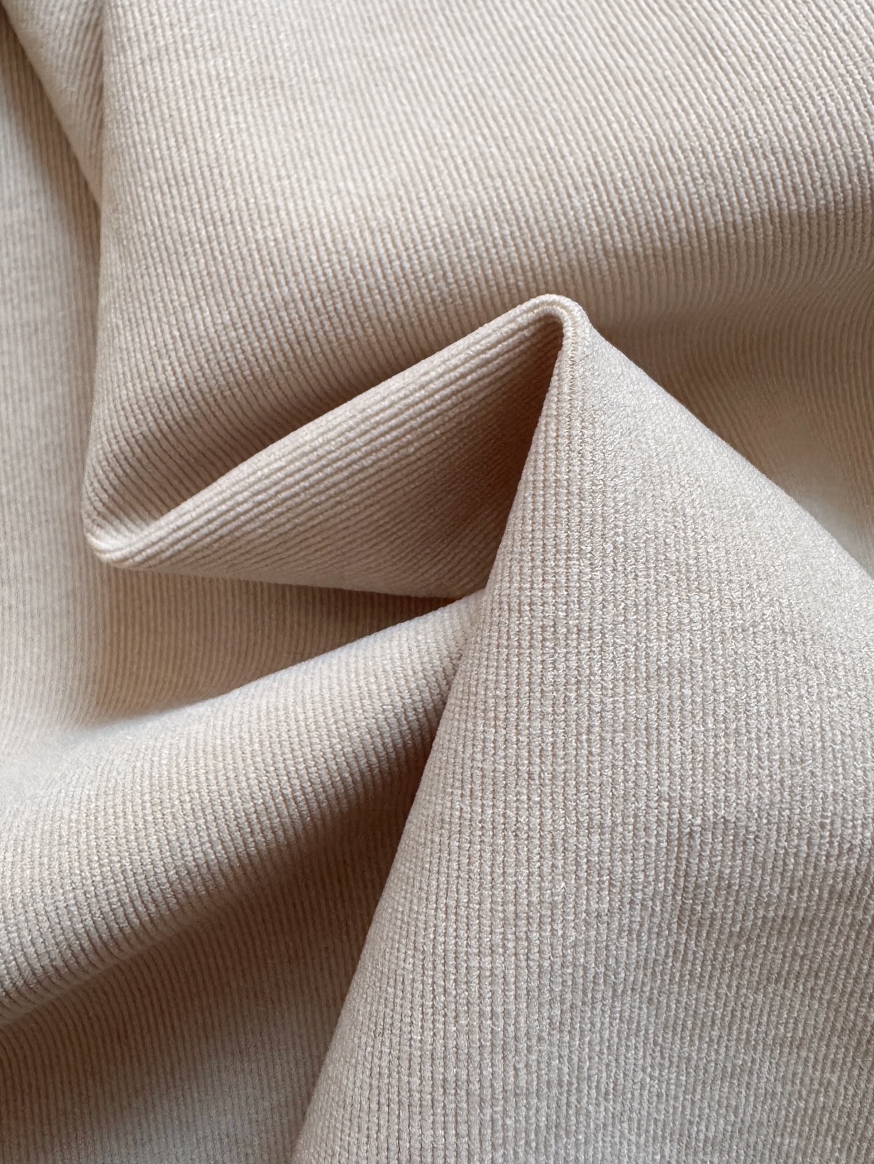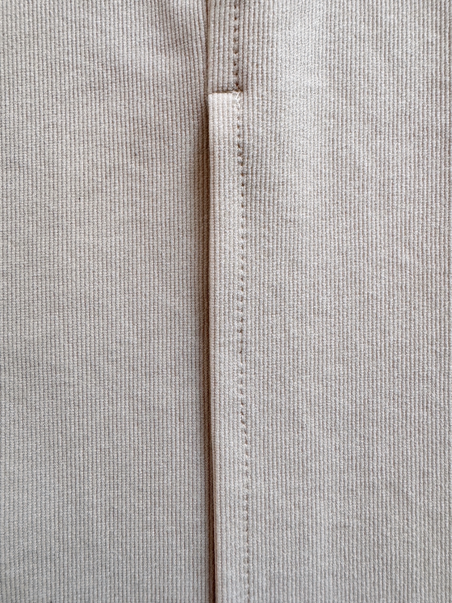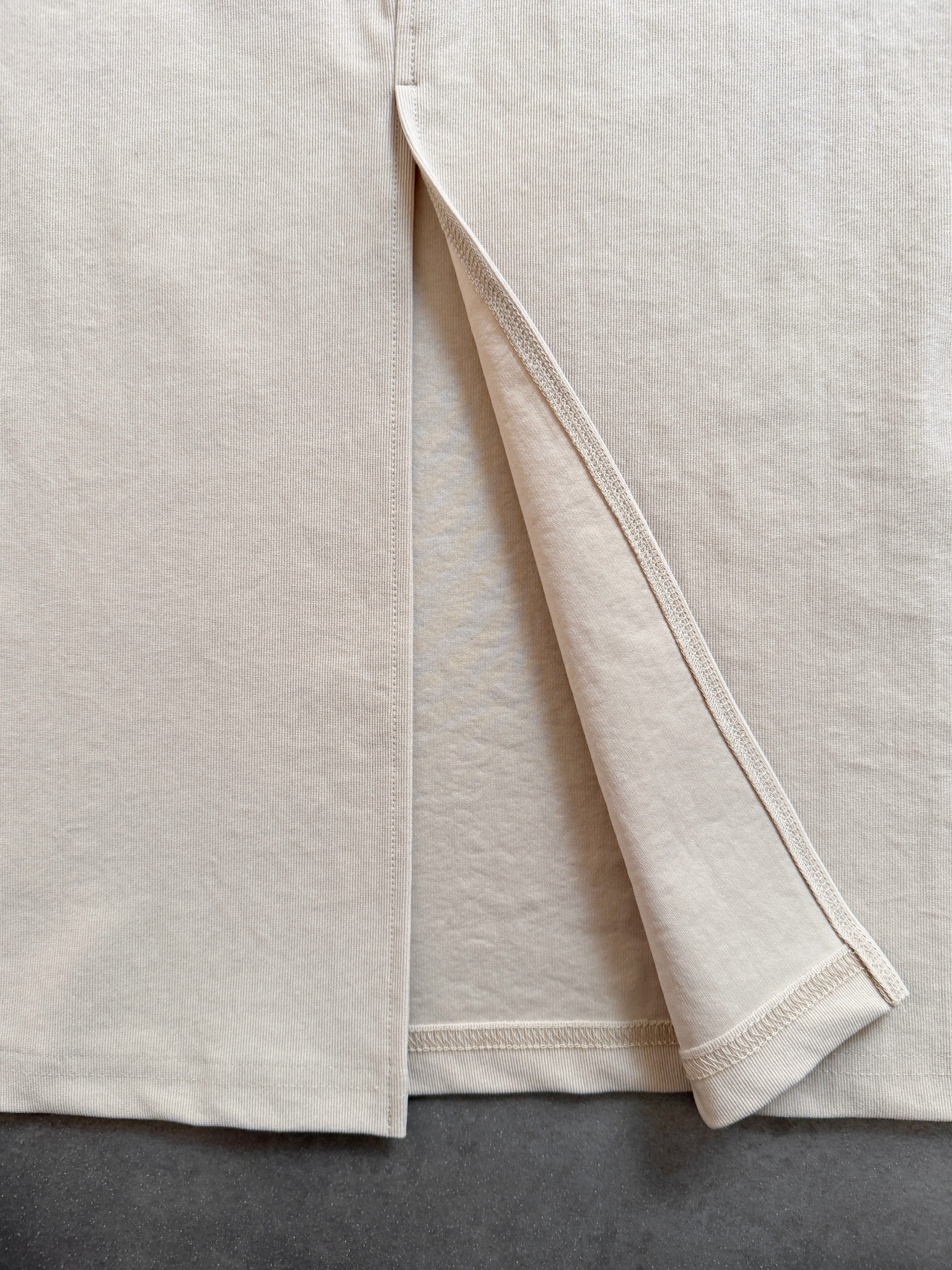 程よい肉感で身体のラインを拾いにくく、すっきりとした印象に仕上がります。
