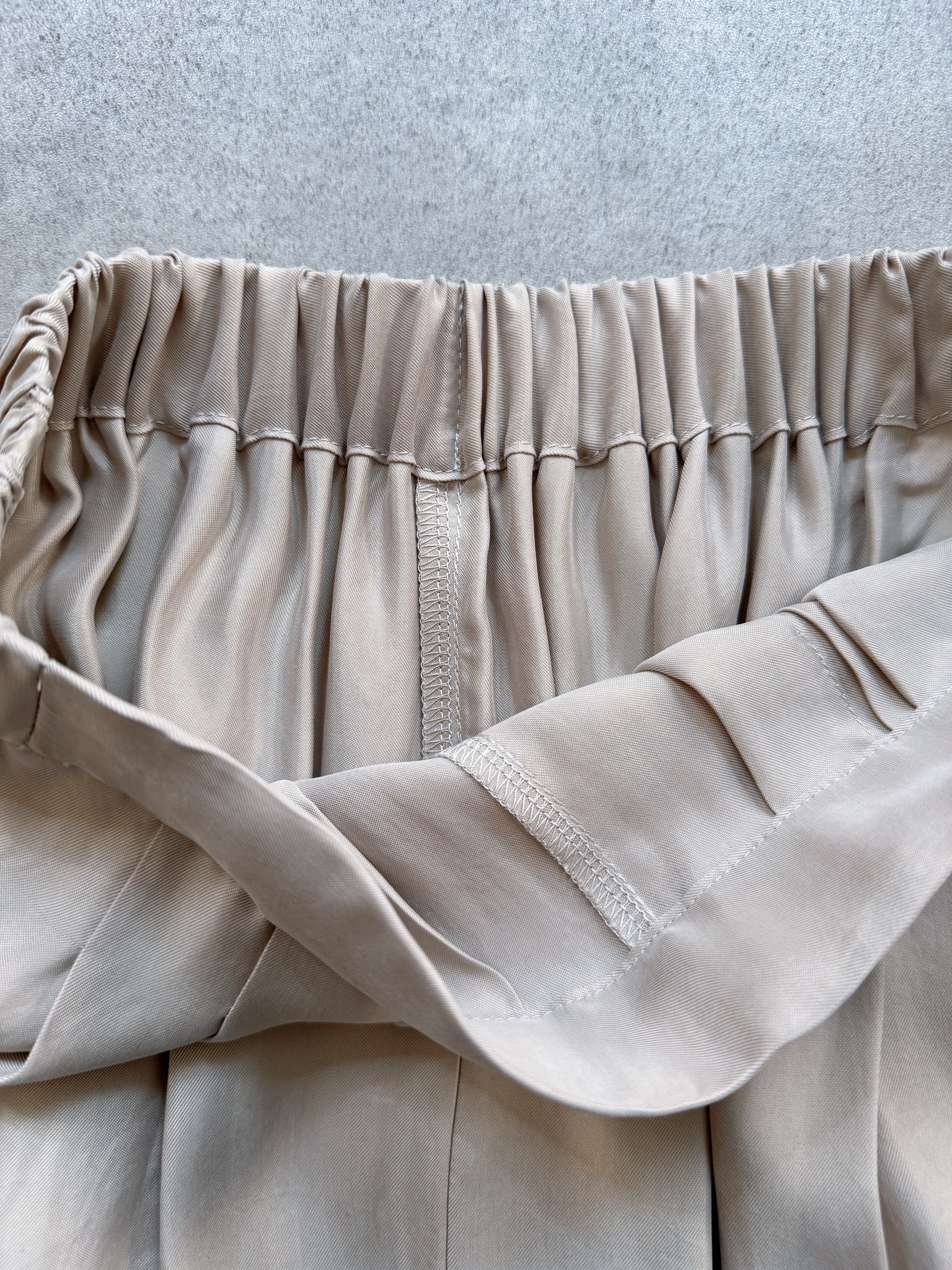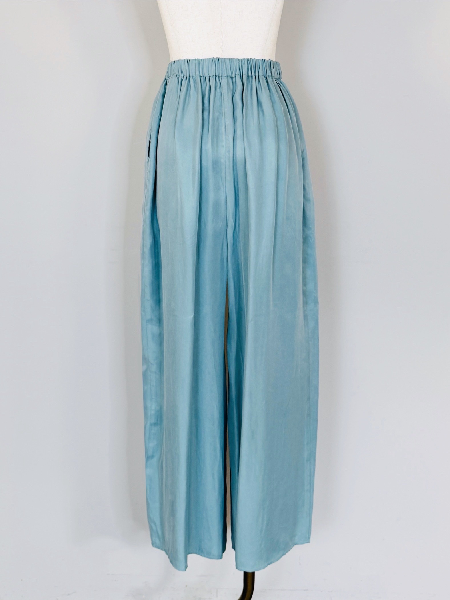 上質なキュプラ素材が織りなすワイドシルエットパンツ。