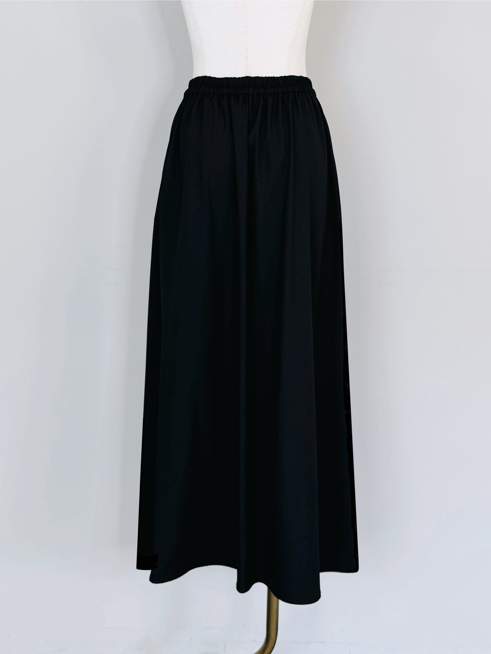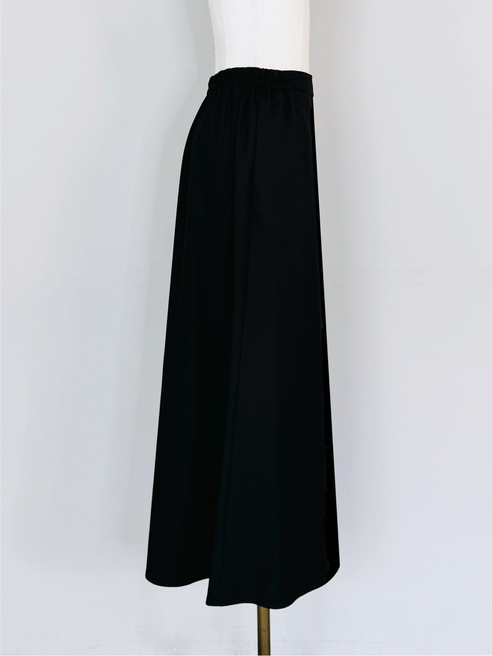 やや裾に向かって広がる上品なシルエットでスタイルアップにも効果的なすっきりした腰回り。
