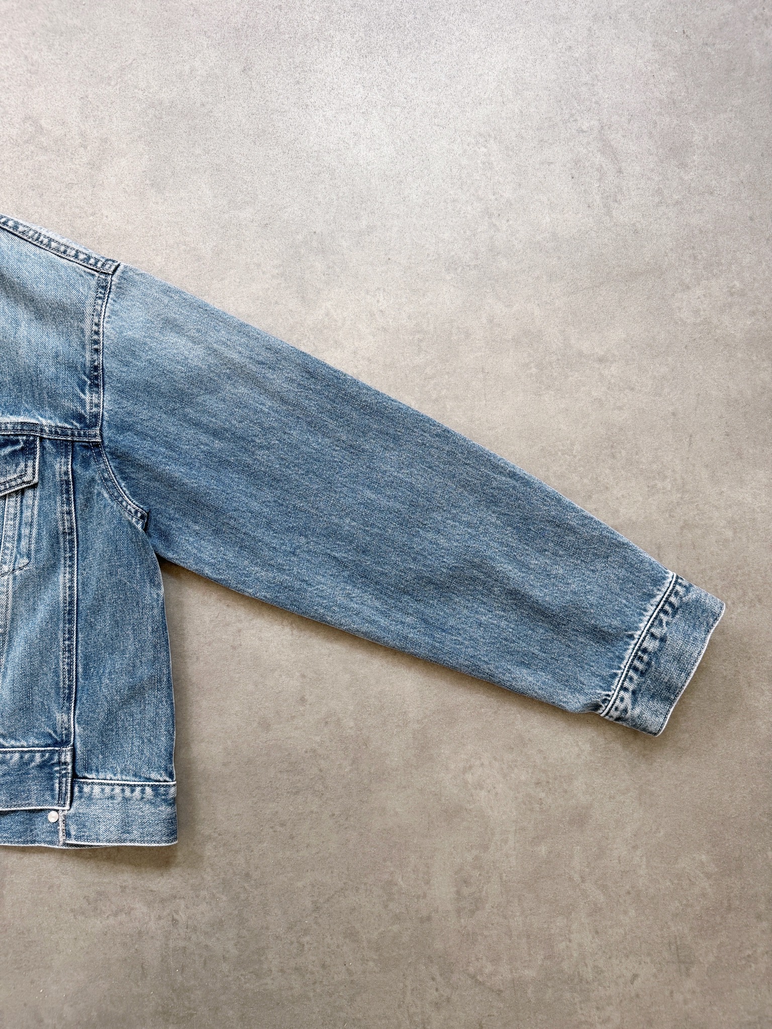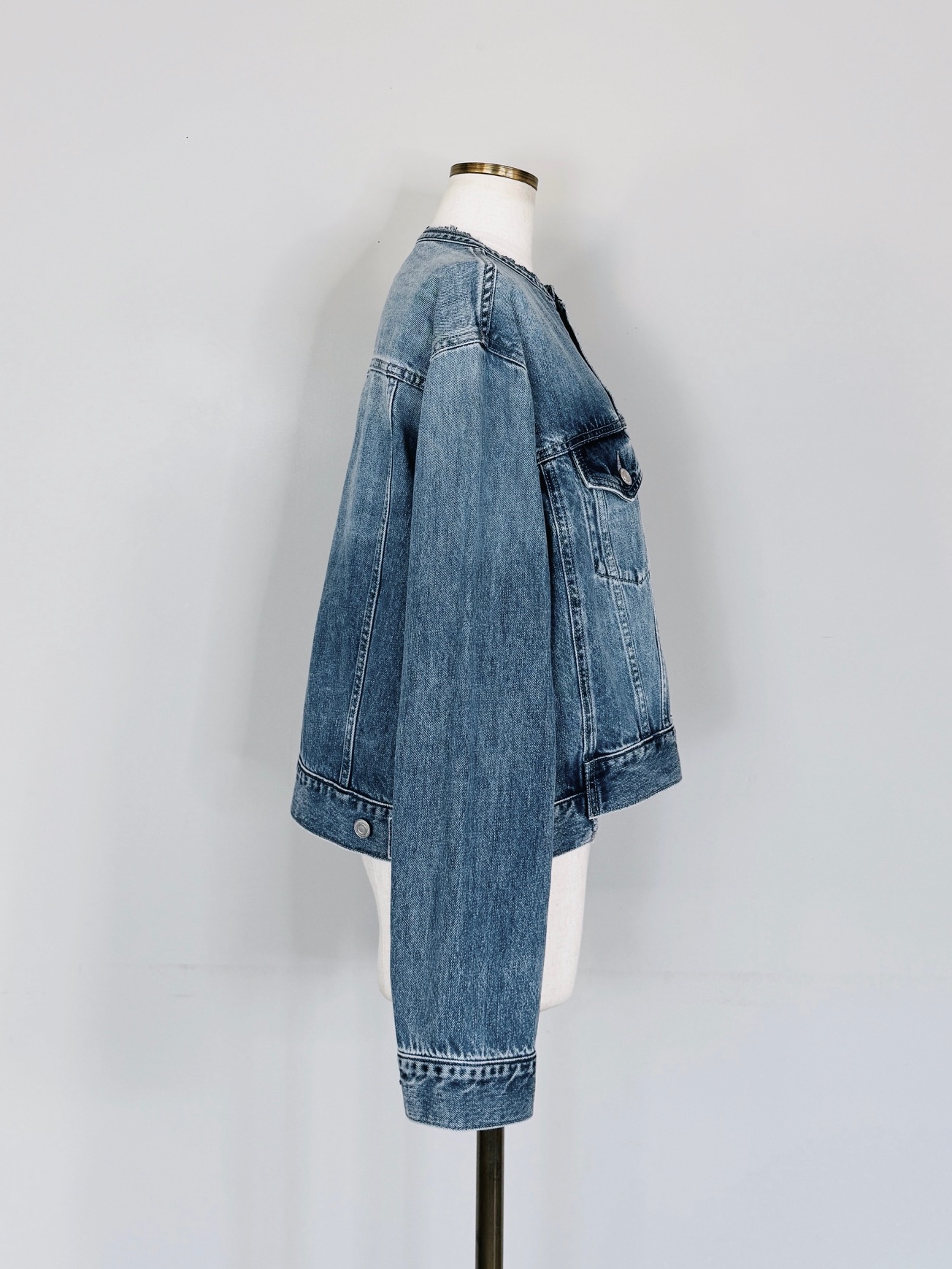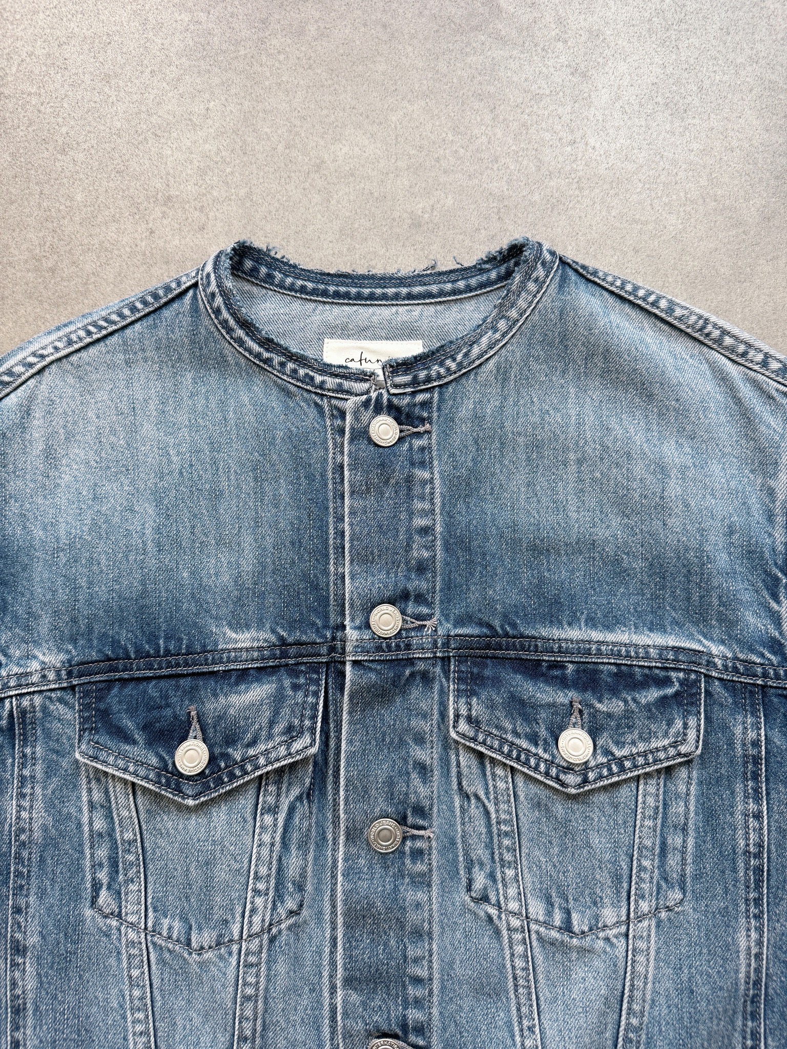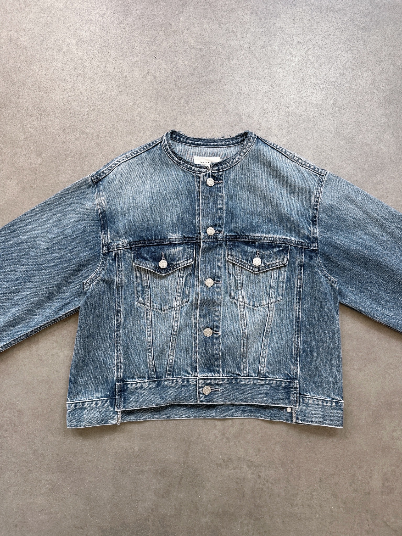 定番だからこそ持っておきたいノーカラーデニムジャケット。