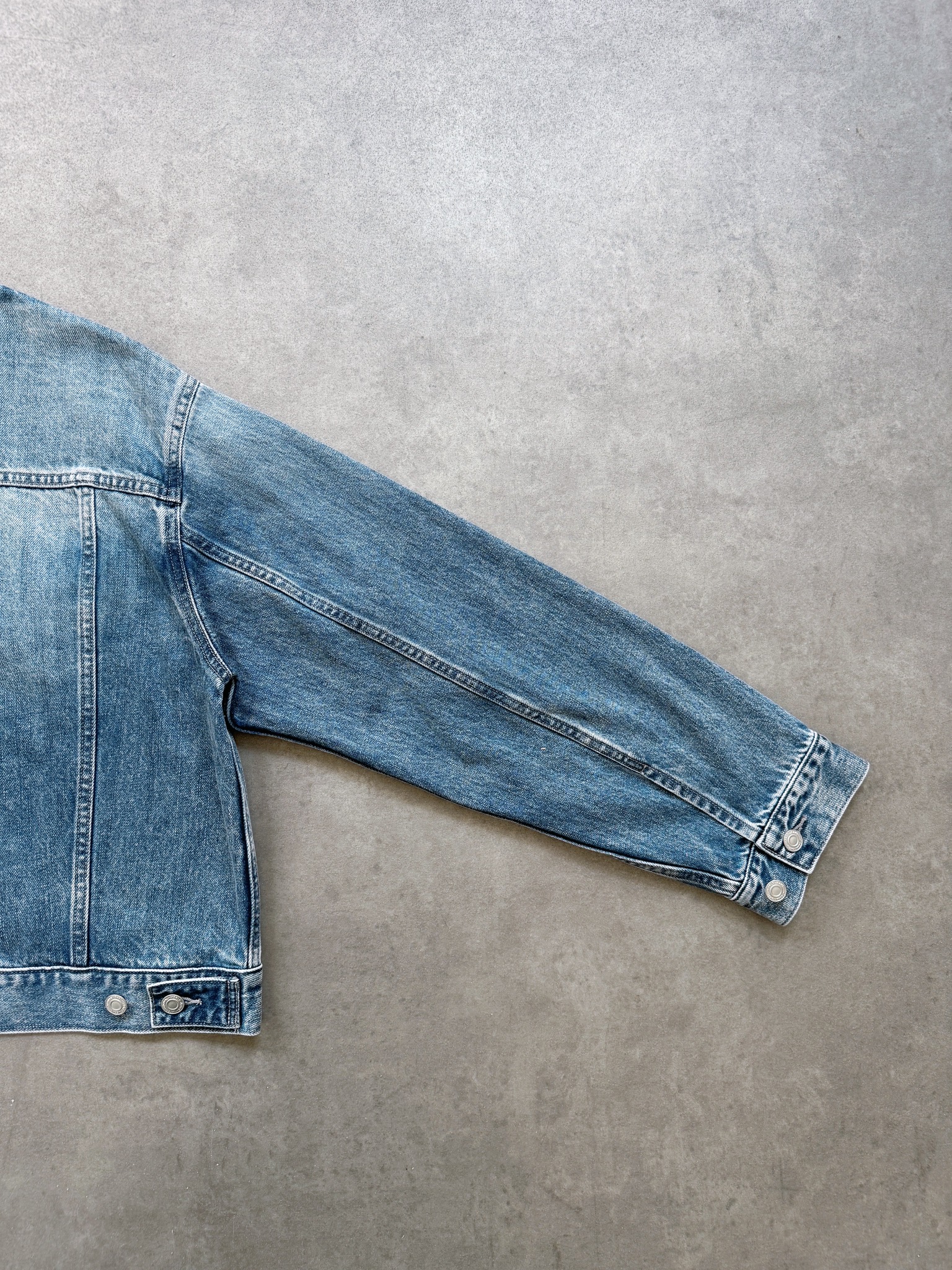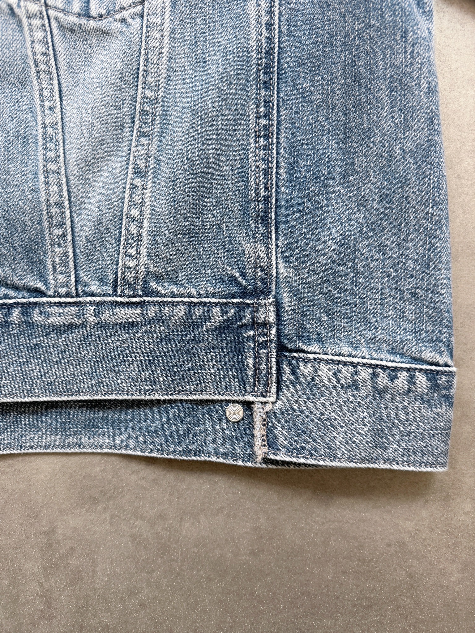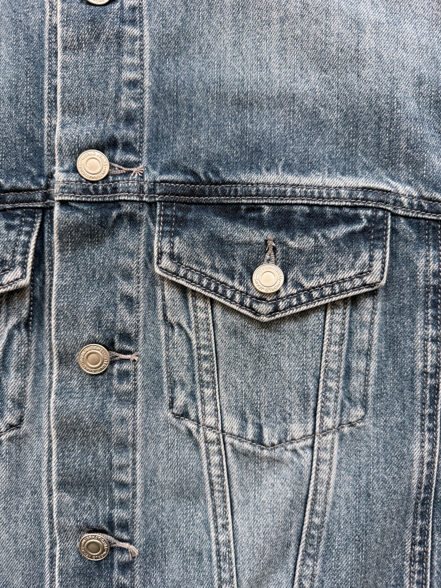 定番だからこそ持っておきたいノーカラーデニムジャケット。