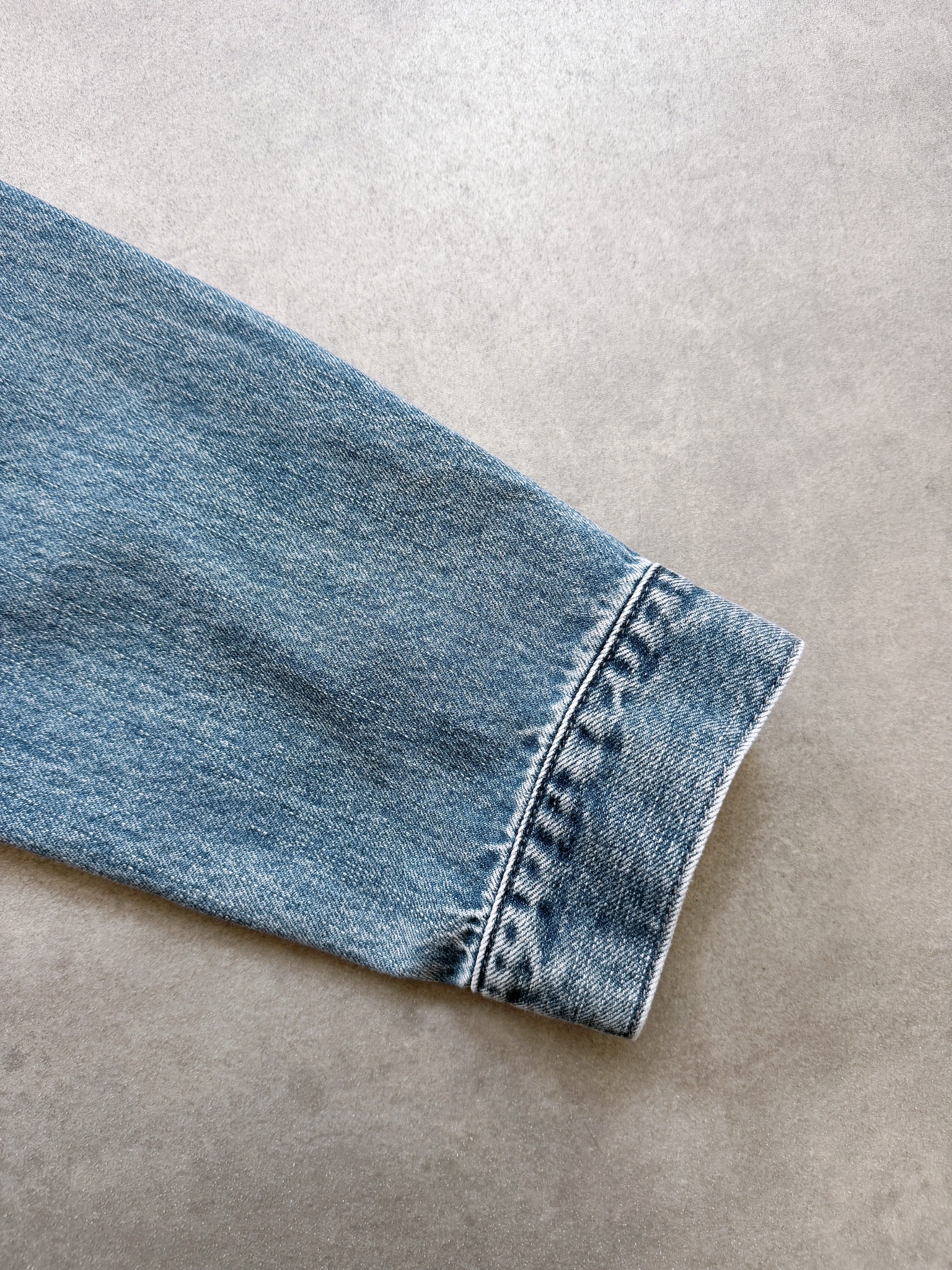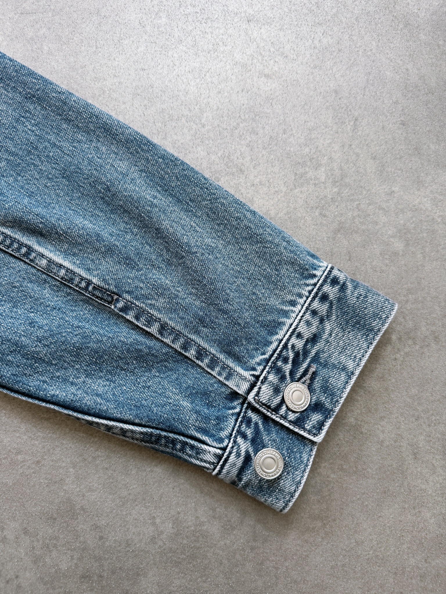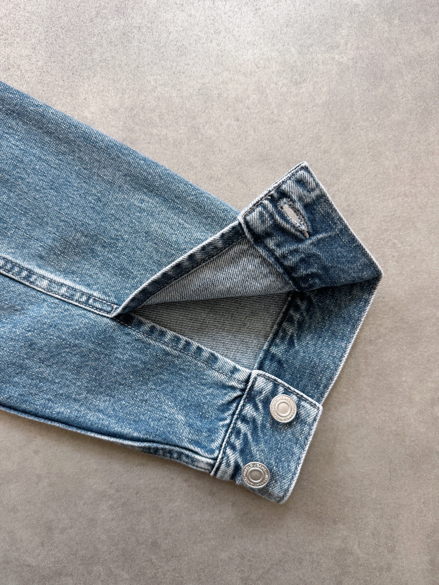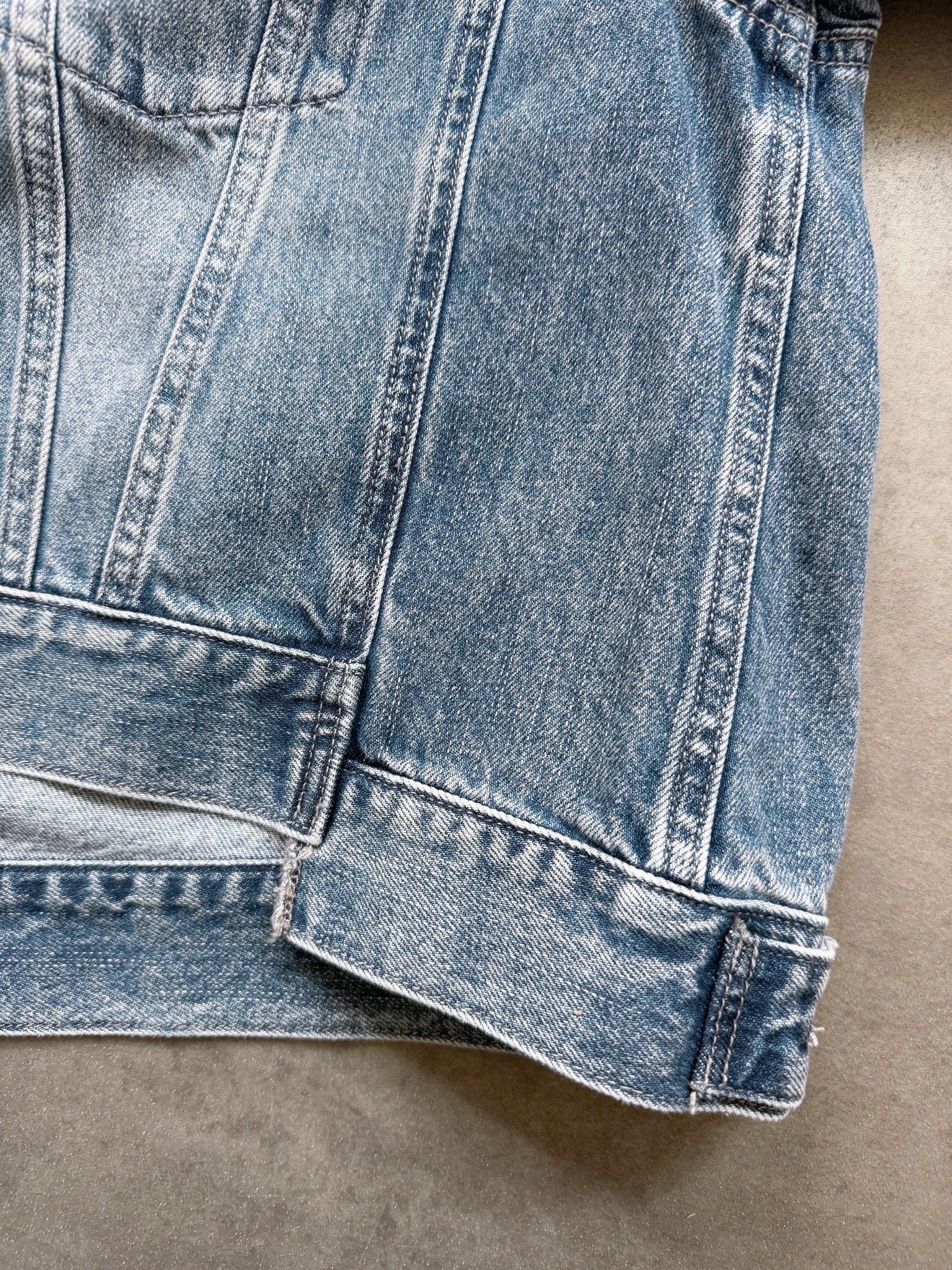 定番だからこそ持っておきたいノーカラーデニムジャケット。