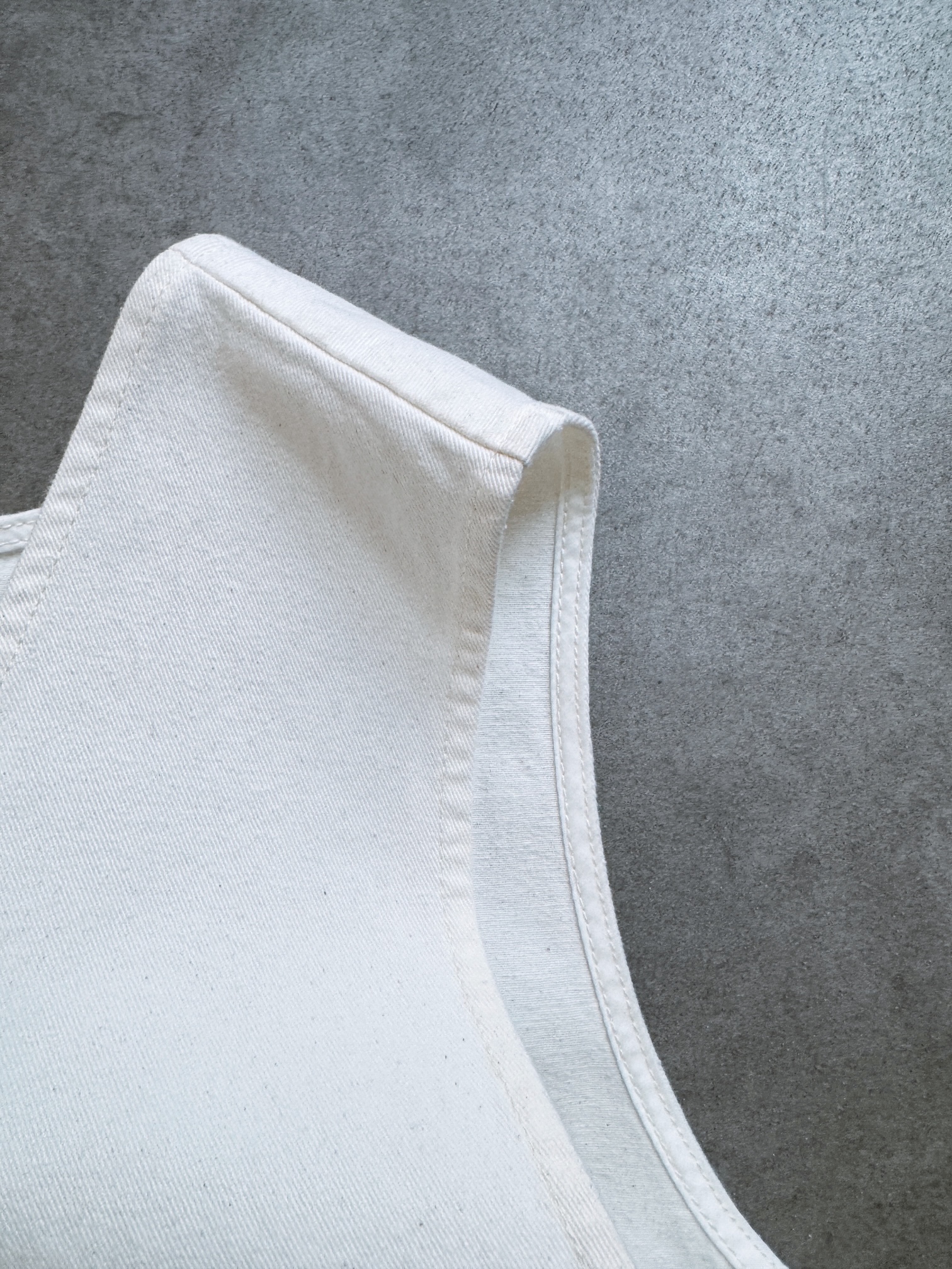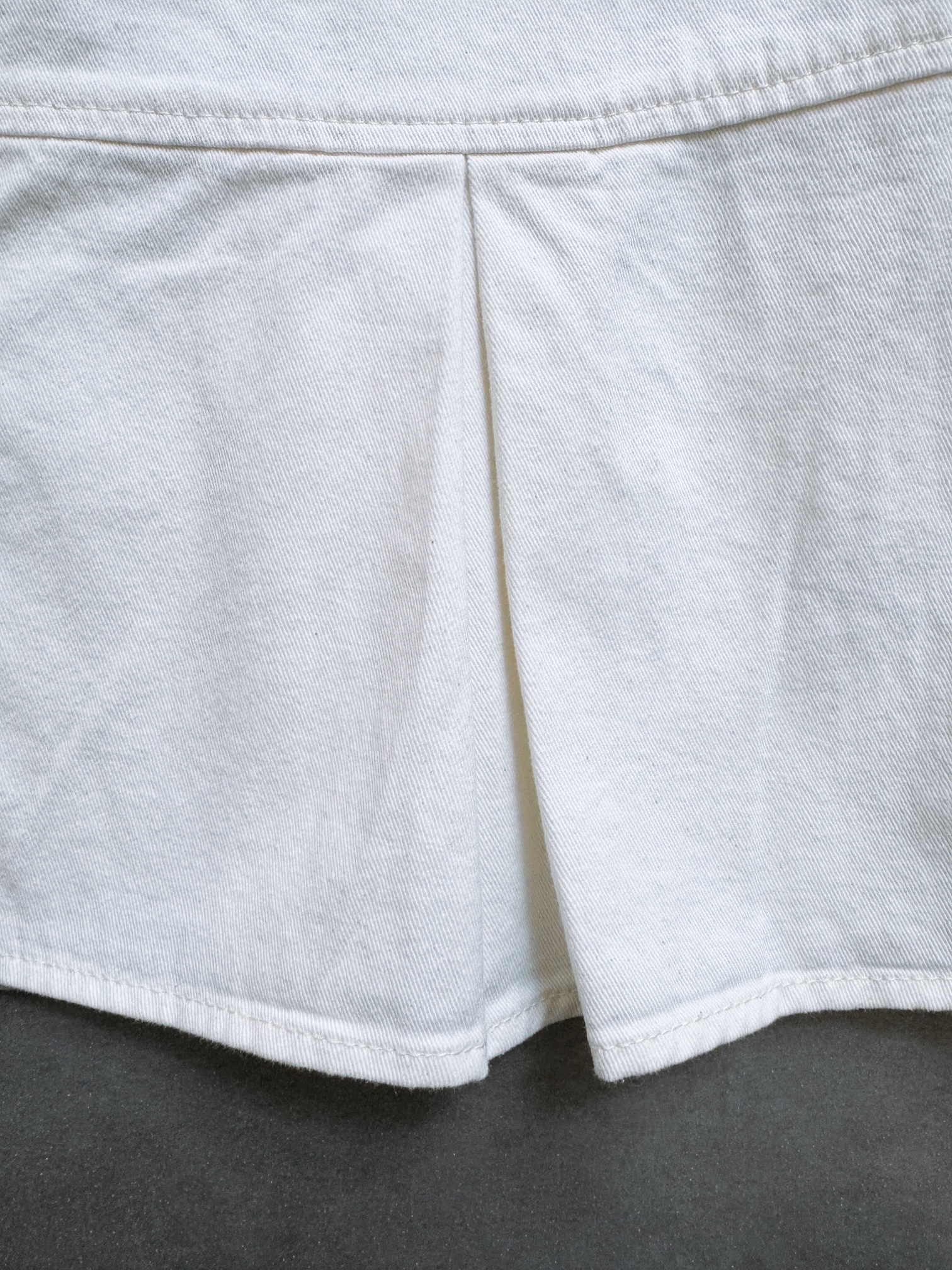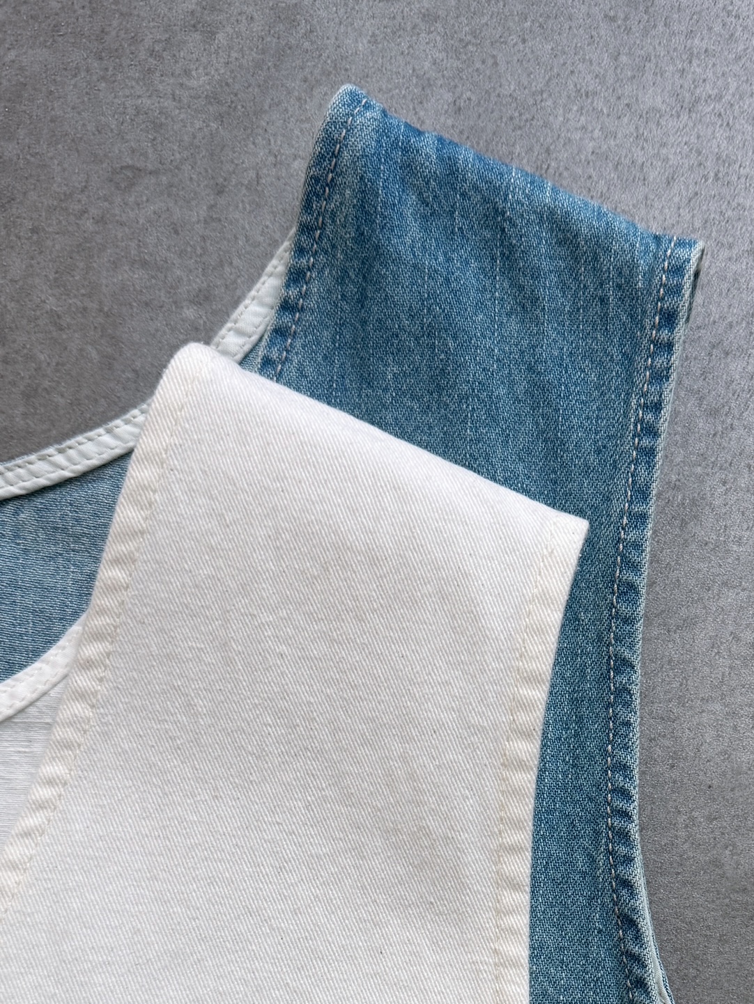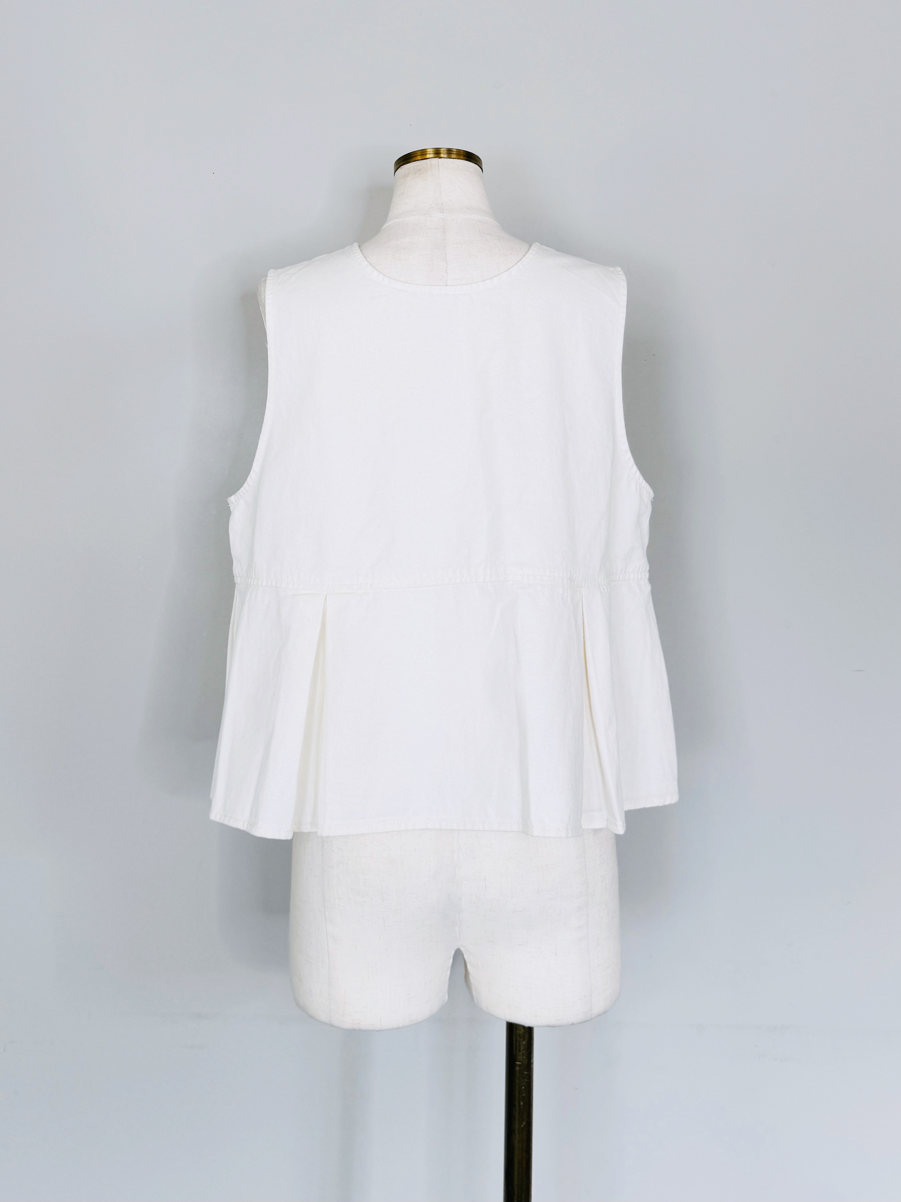 やわらかなデニムの風合いにペプラムのデザインを効かせたジレ。