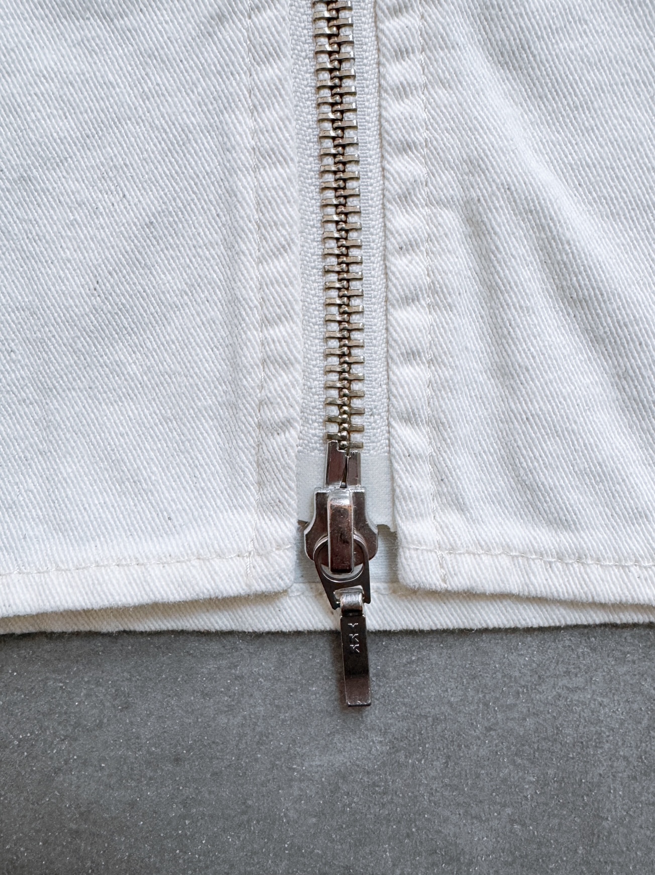 Vネックですっきり見せつつ、ダブルジップで抜き感や丈感を自在に変えられるため、日常のコーデに取り入れやすいのがポイント。