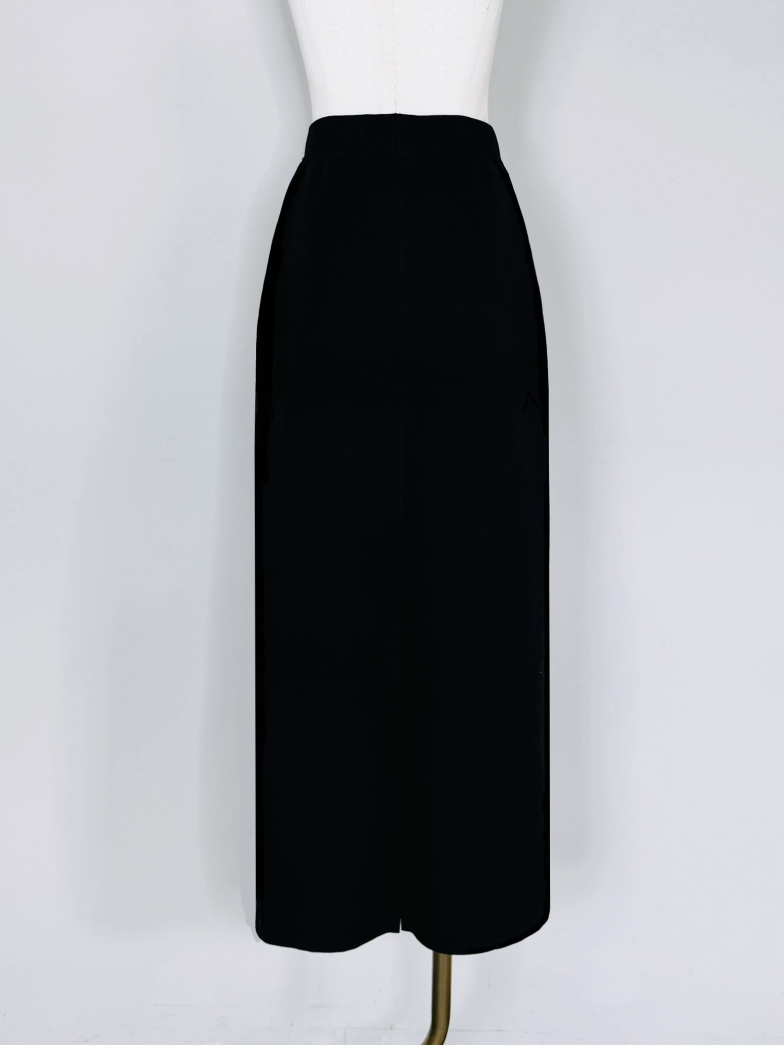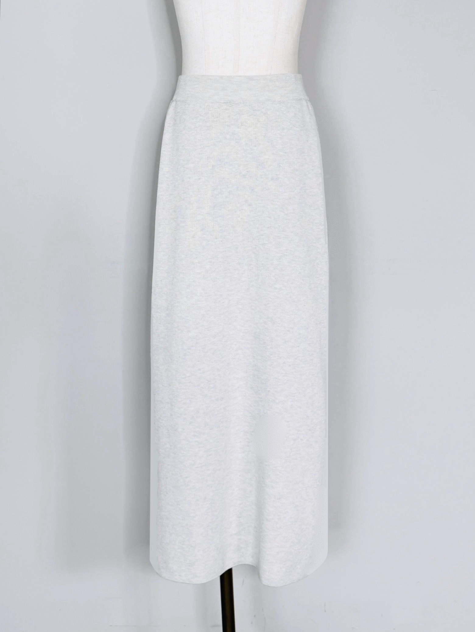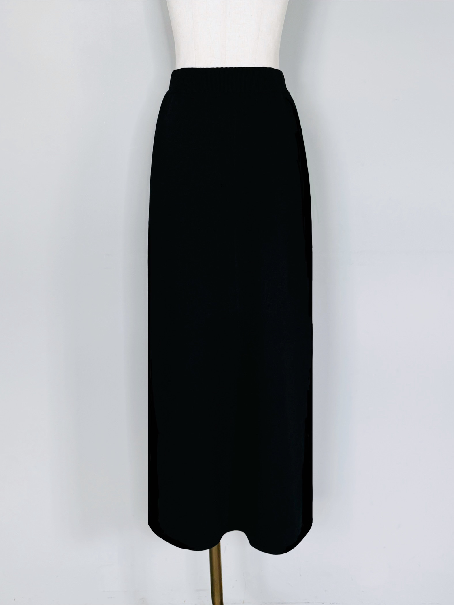身体のラインを拾いすぎず、きれいな縦のシルエットでスタイルアップが期待できるニットスカートです。