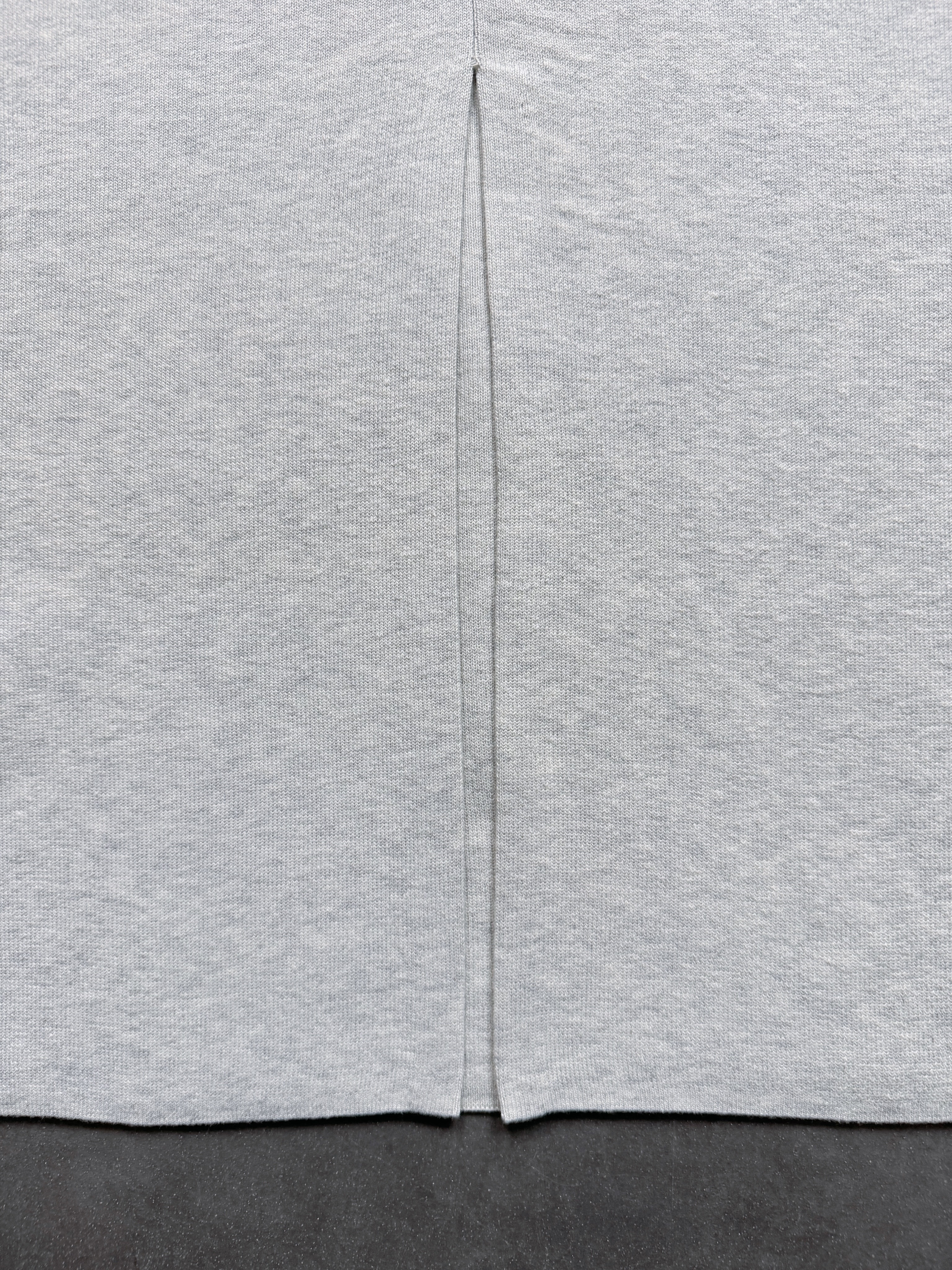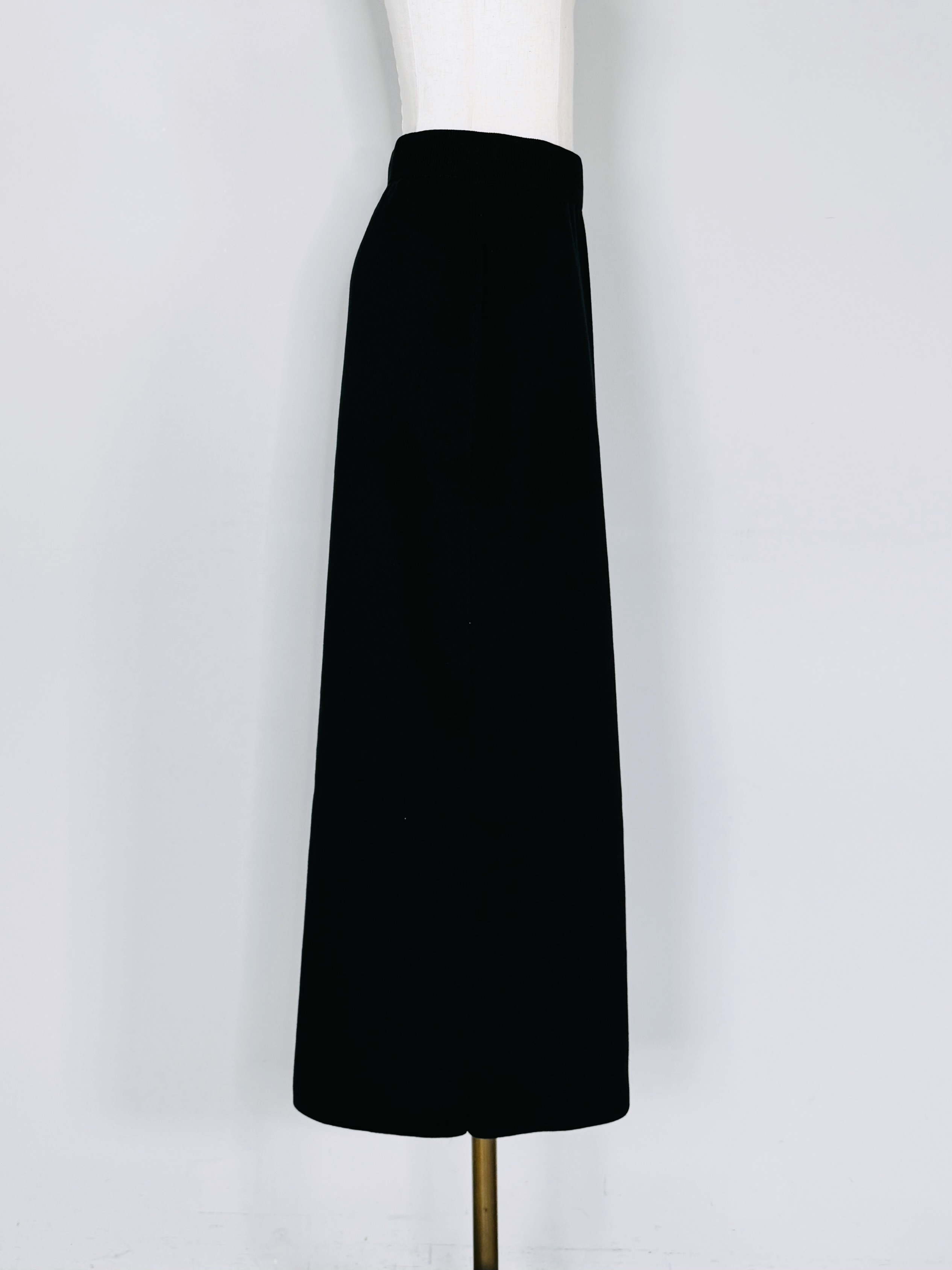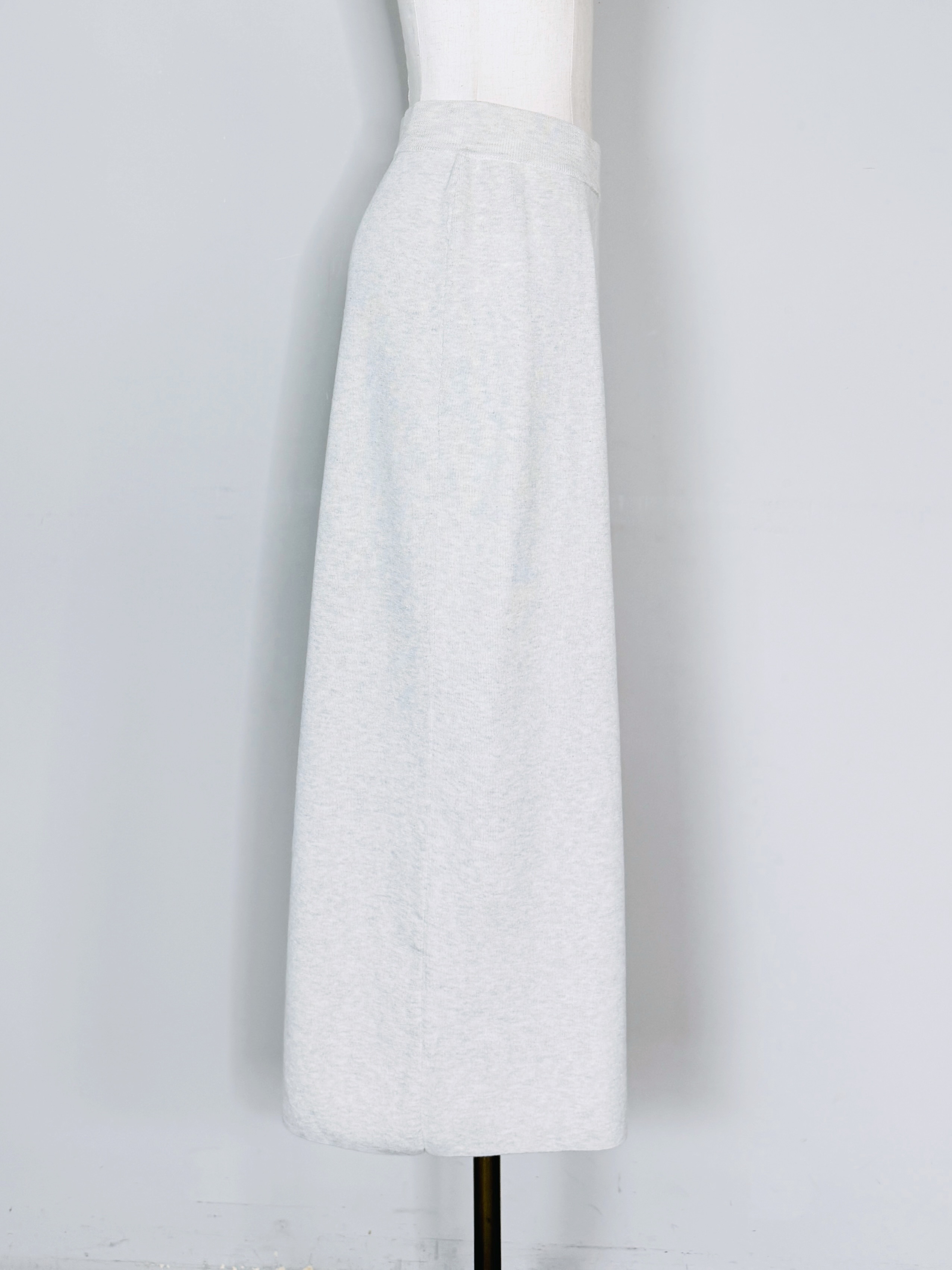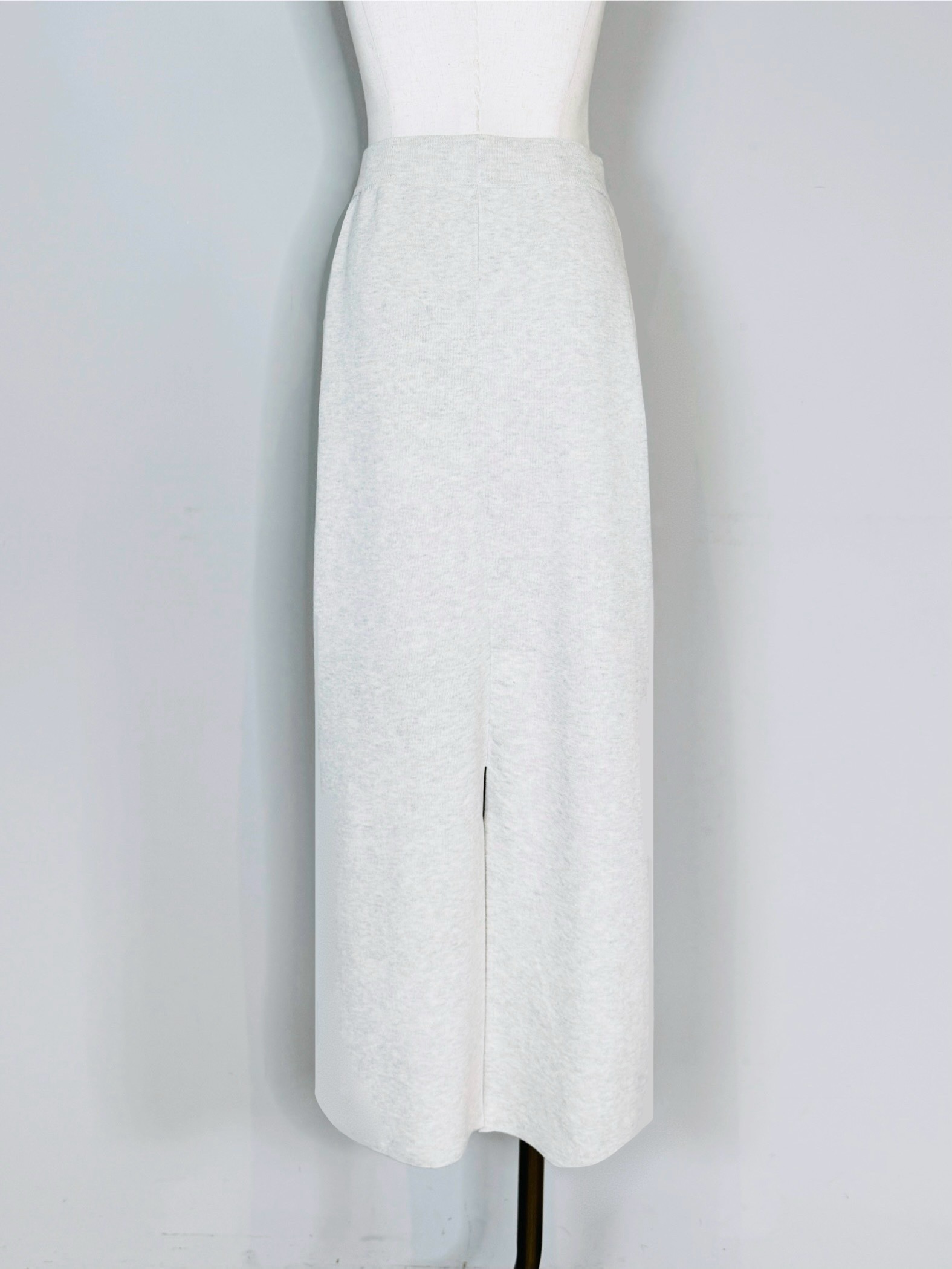 身体のラインを拾いすぎず、きれいな縦のシルエットでスタイルアップが期待できるニットスカートです。