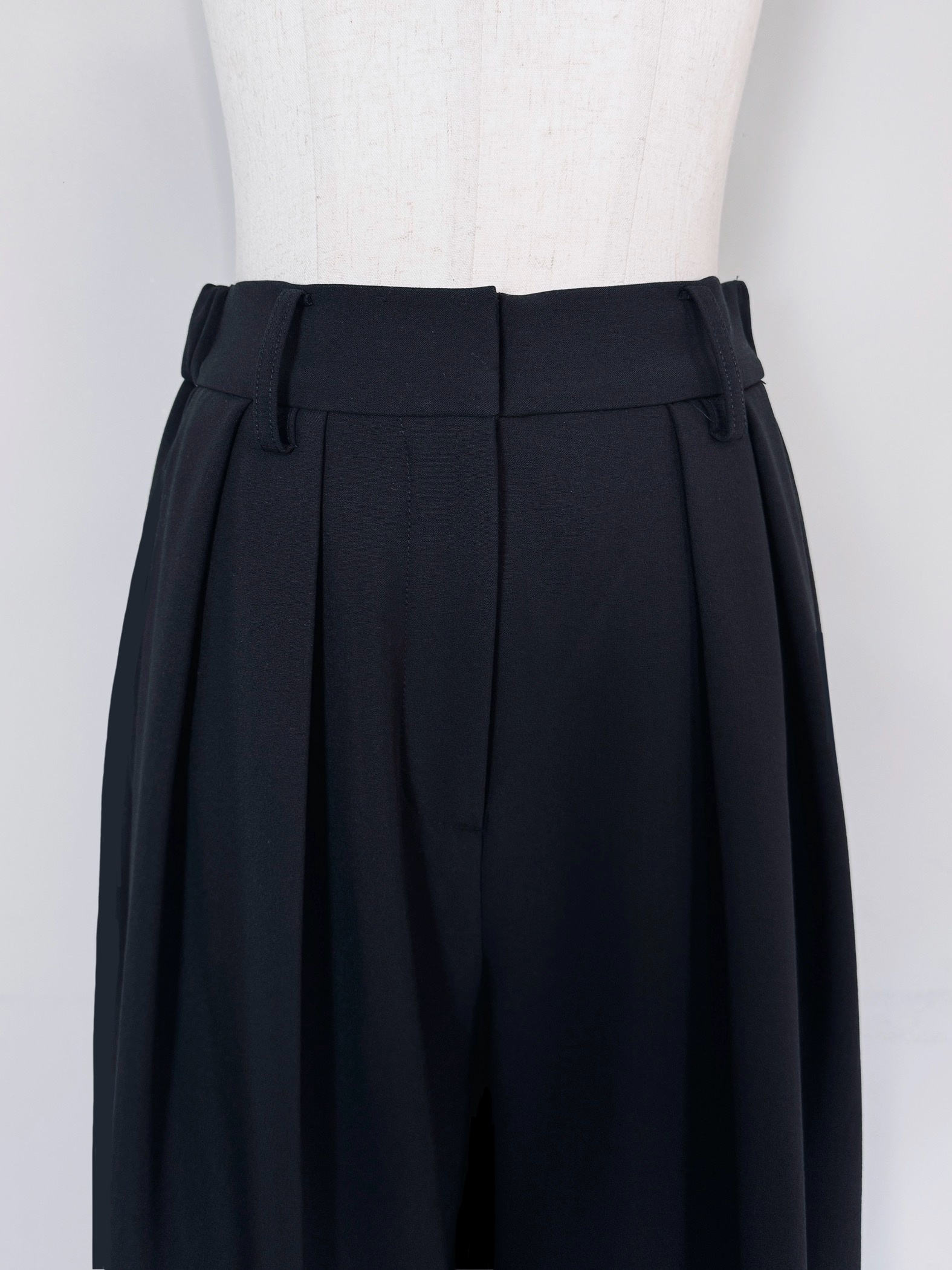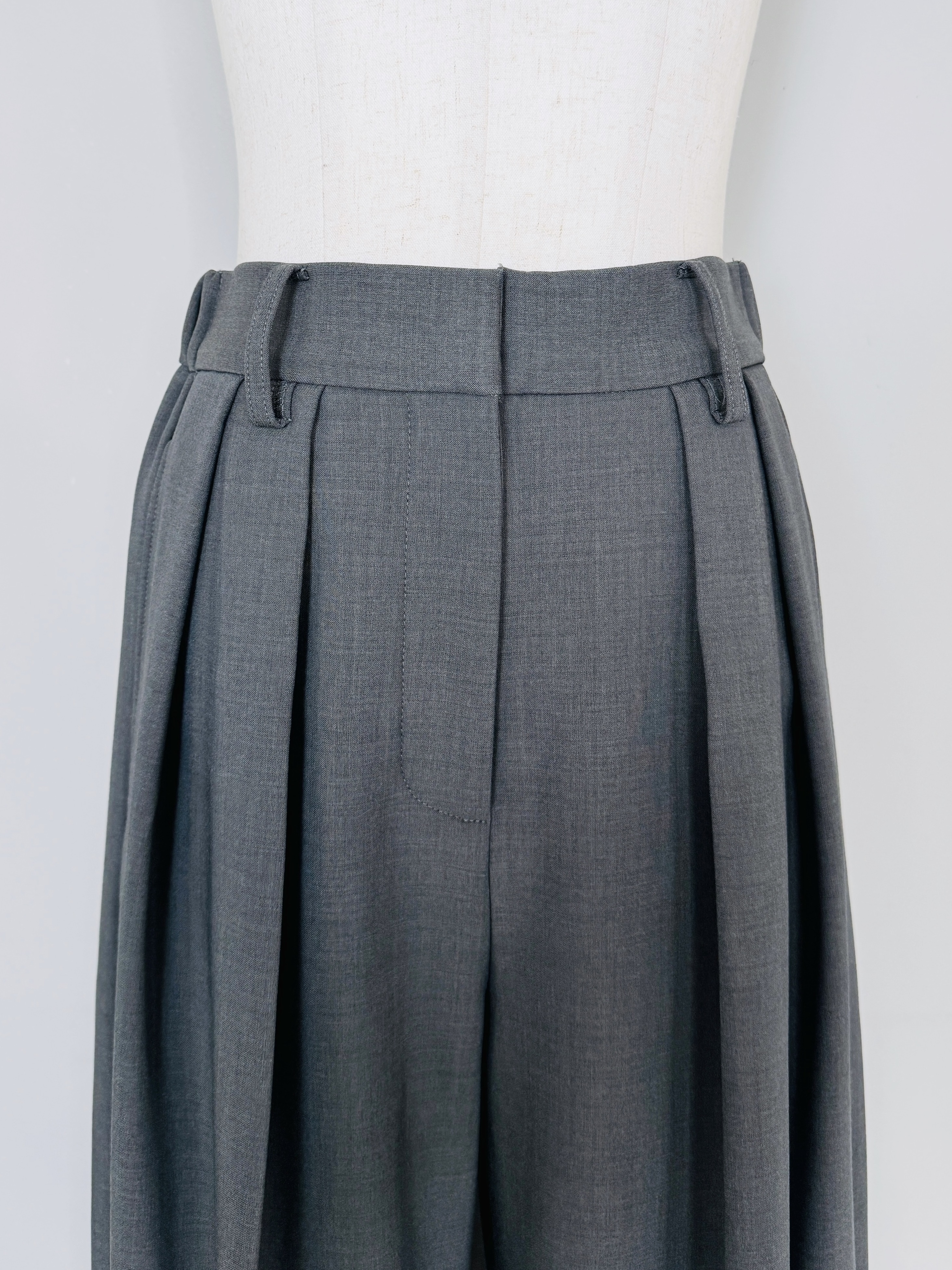 ウエストにはベルトループが付いているのでお持ちのベルトで様々なスタイリングをお楽しみいただけます。