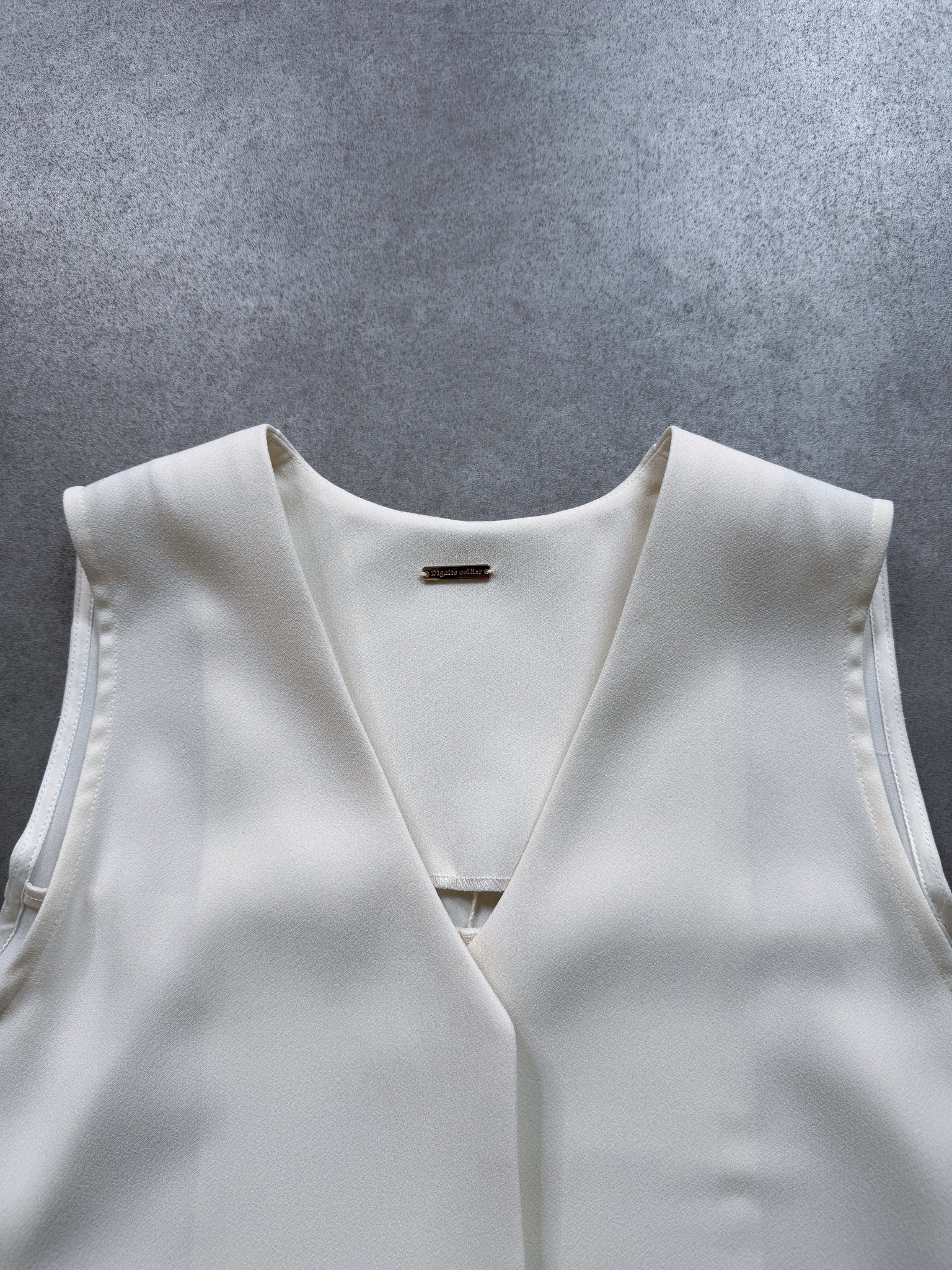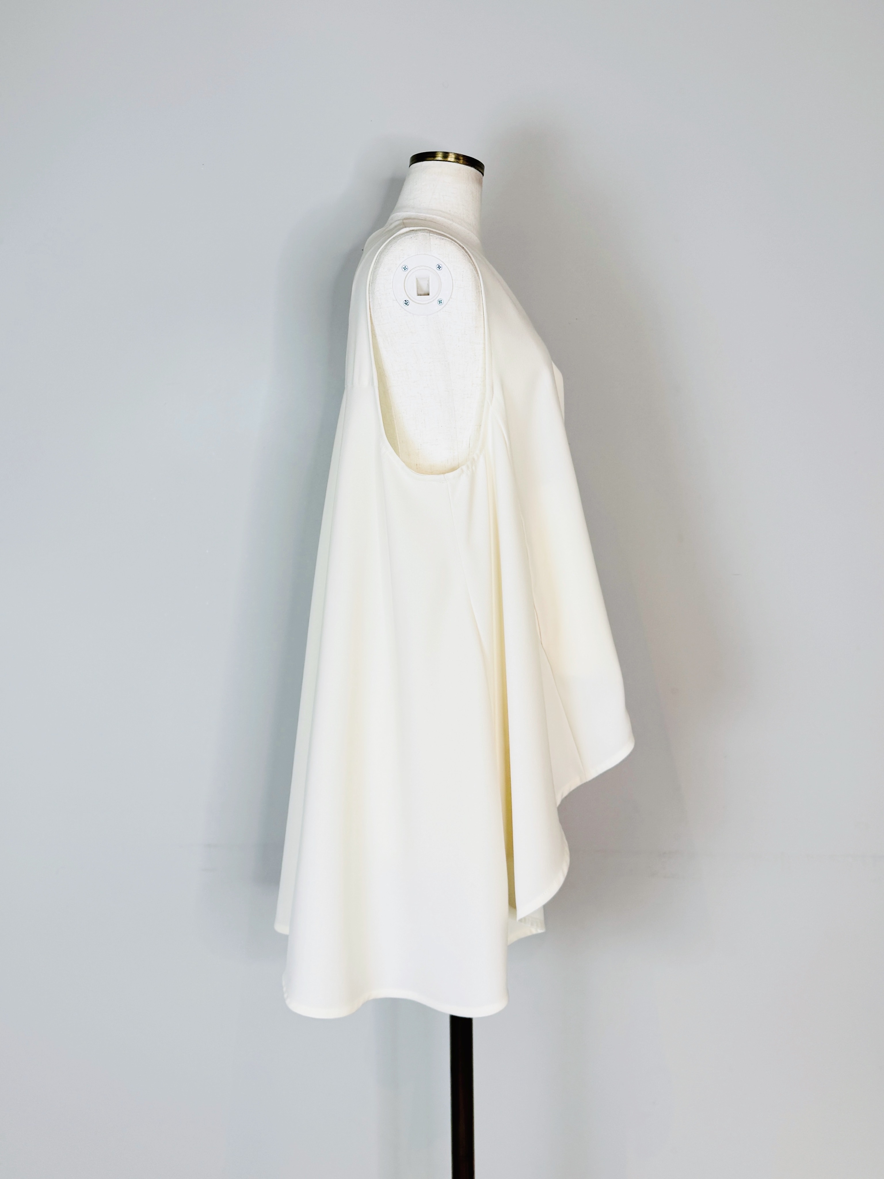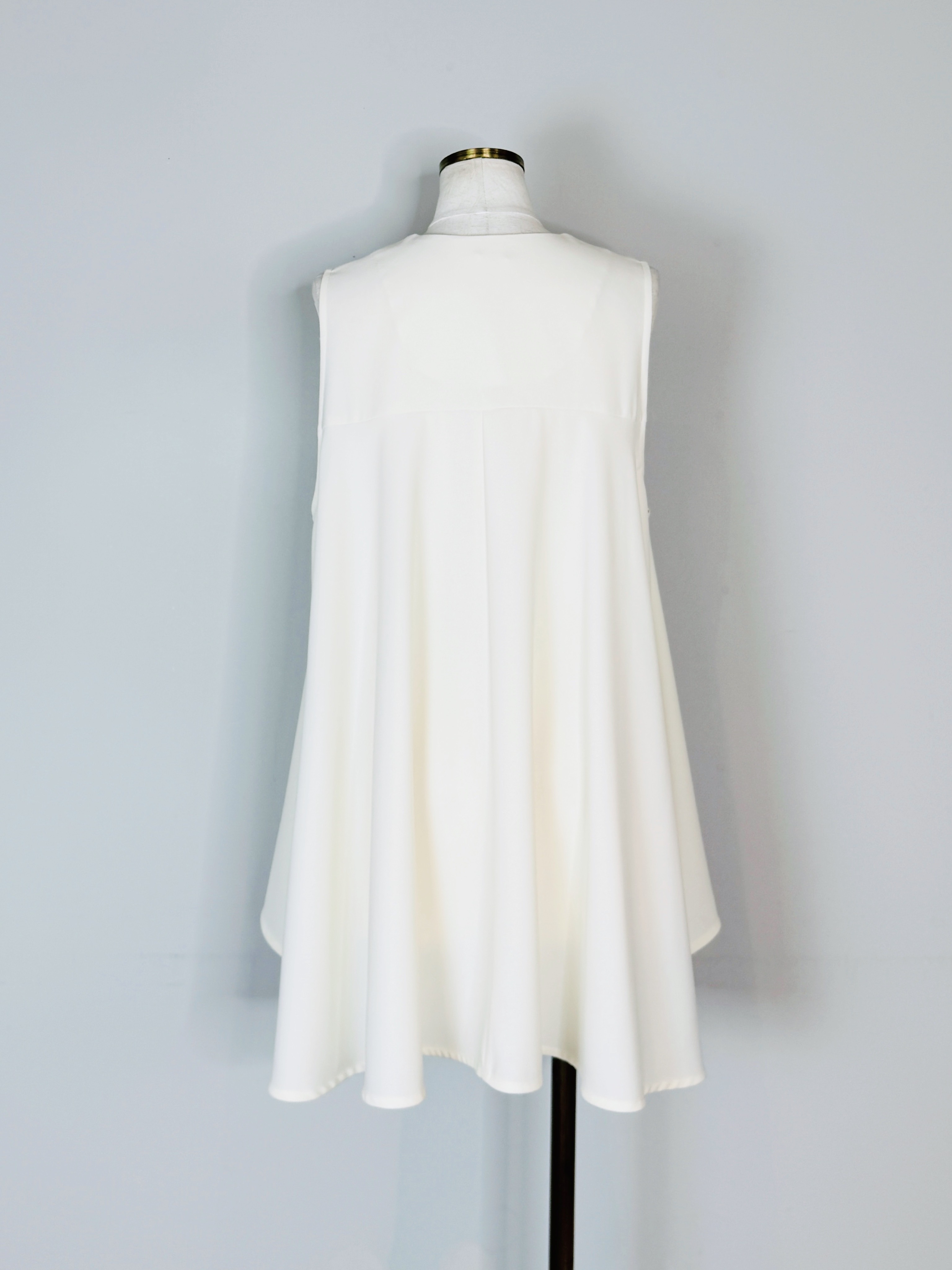 軽やかで立体的なバックフレアディテールが魅力的なベスト。