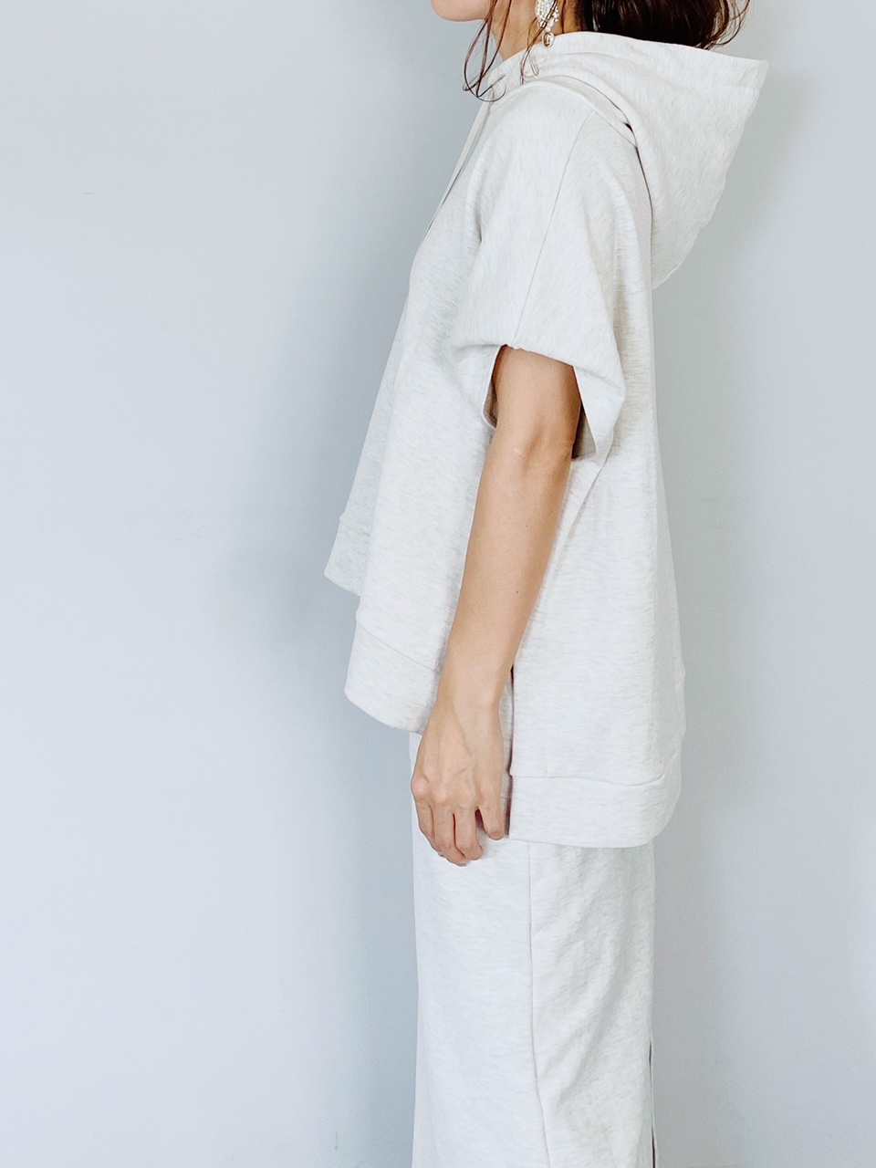 ルーズなシルエットが特徴のスエットフードベスト。