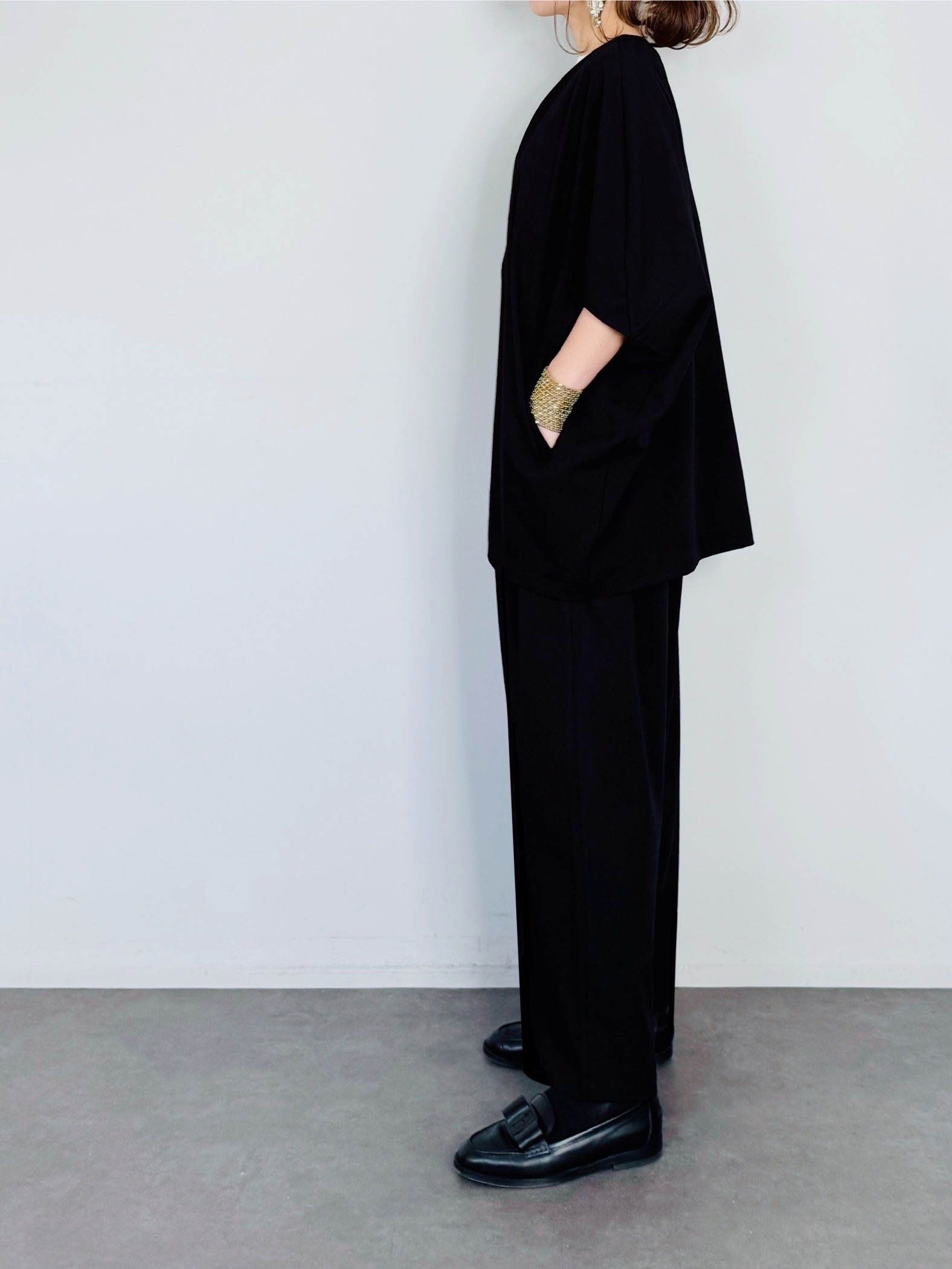 ゆったりとしたドルマンシルエットでストレスフリーな着心地。
