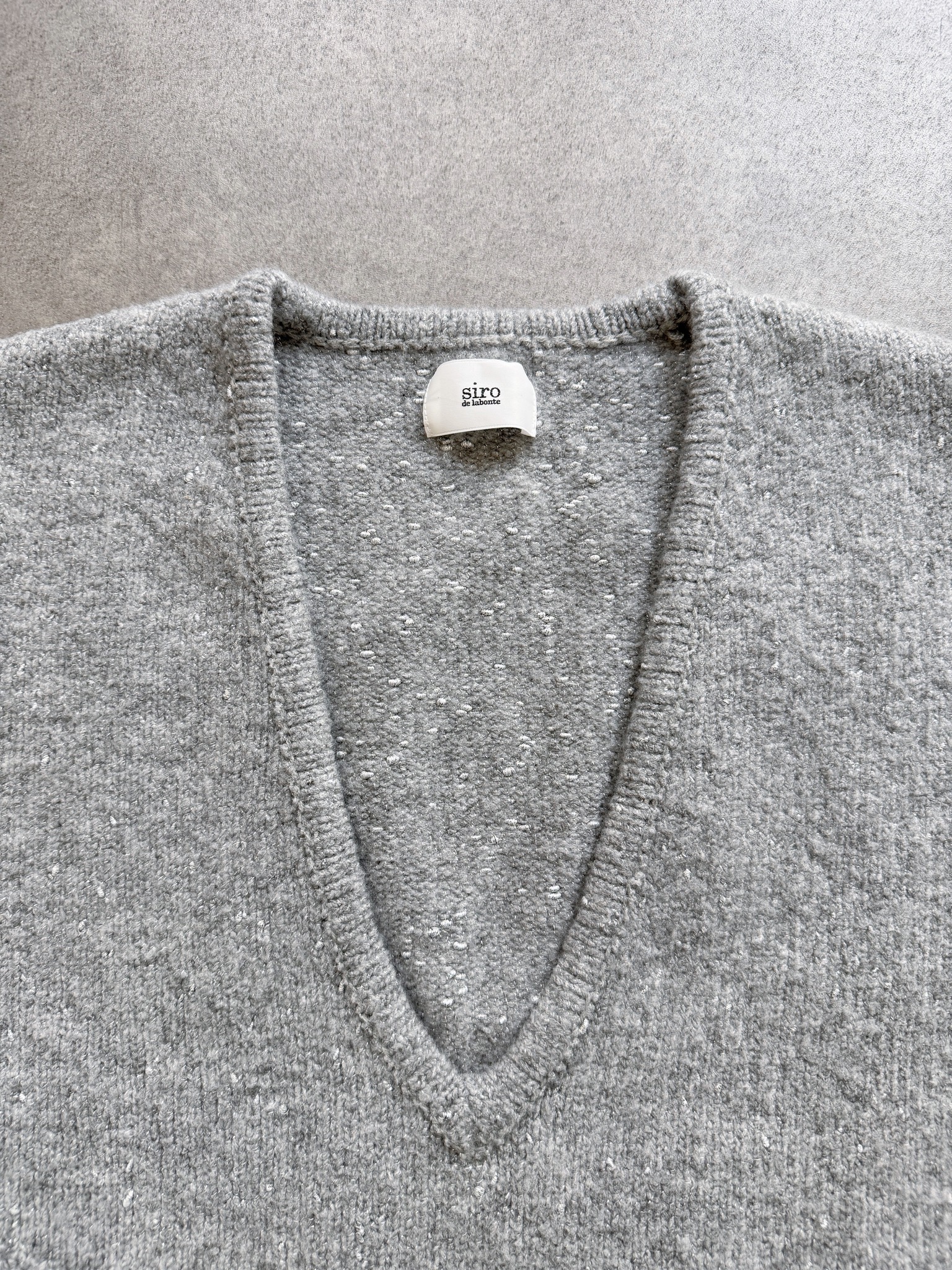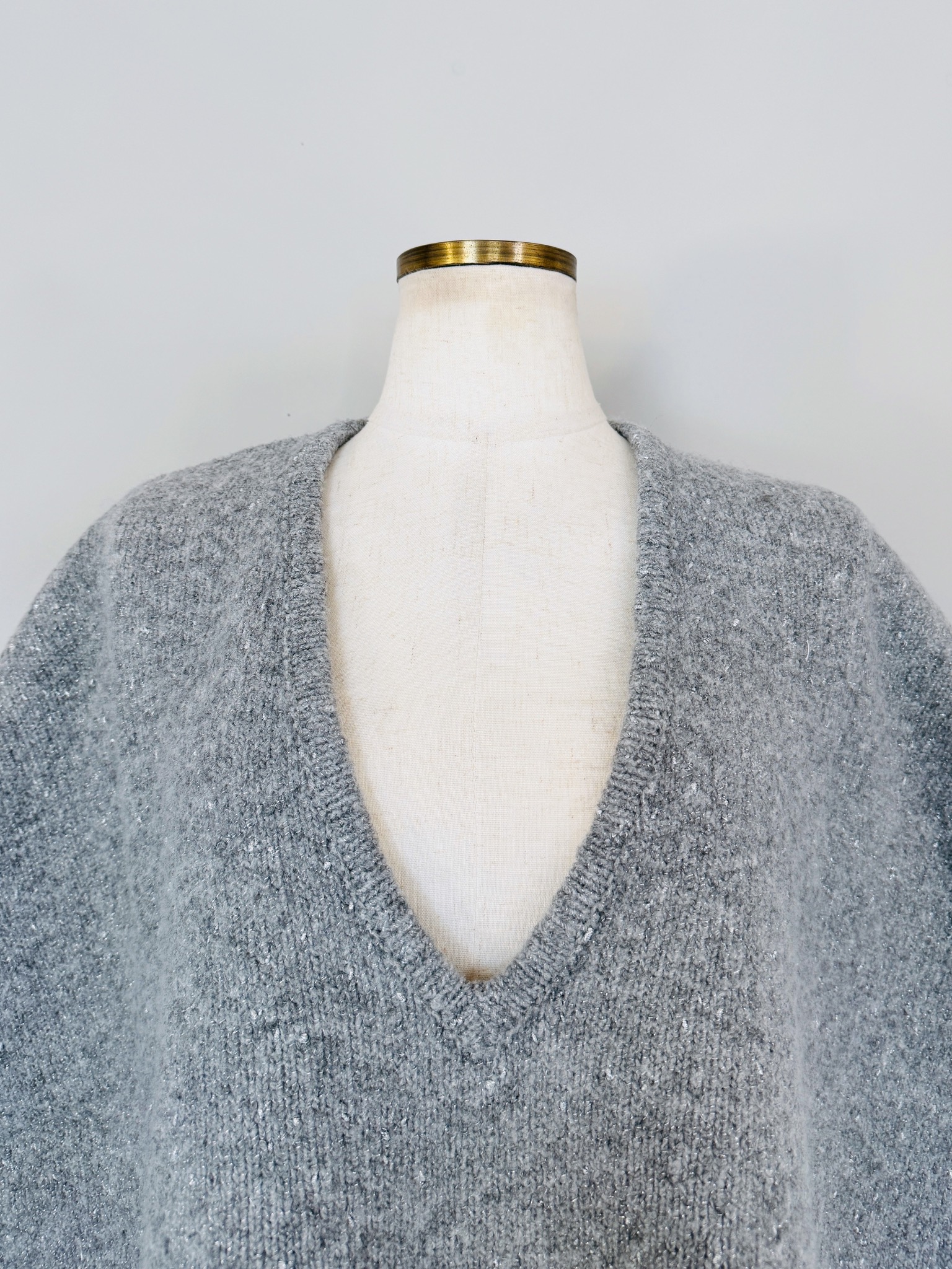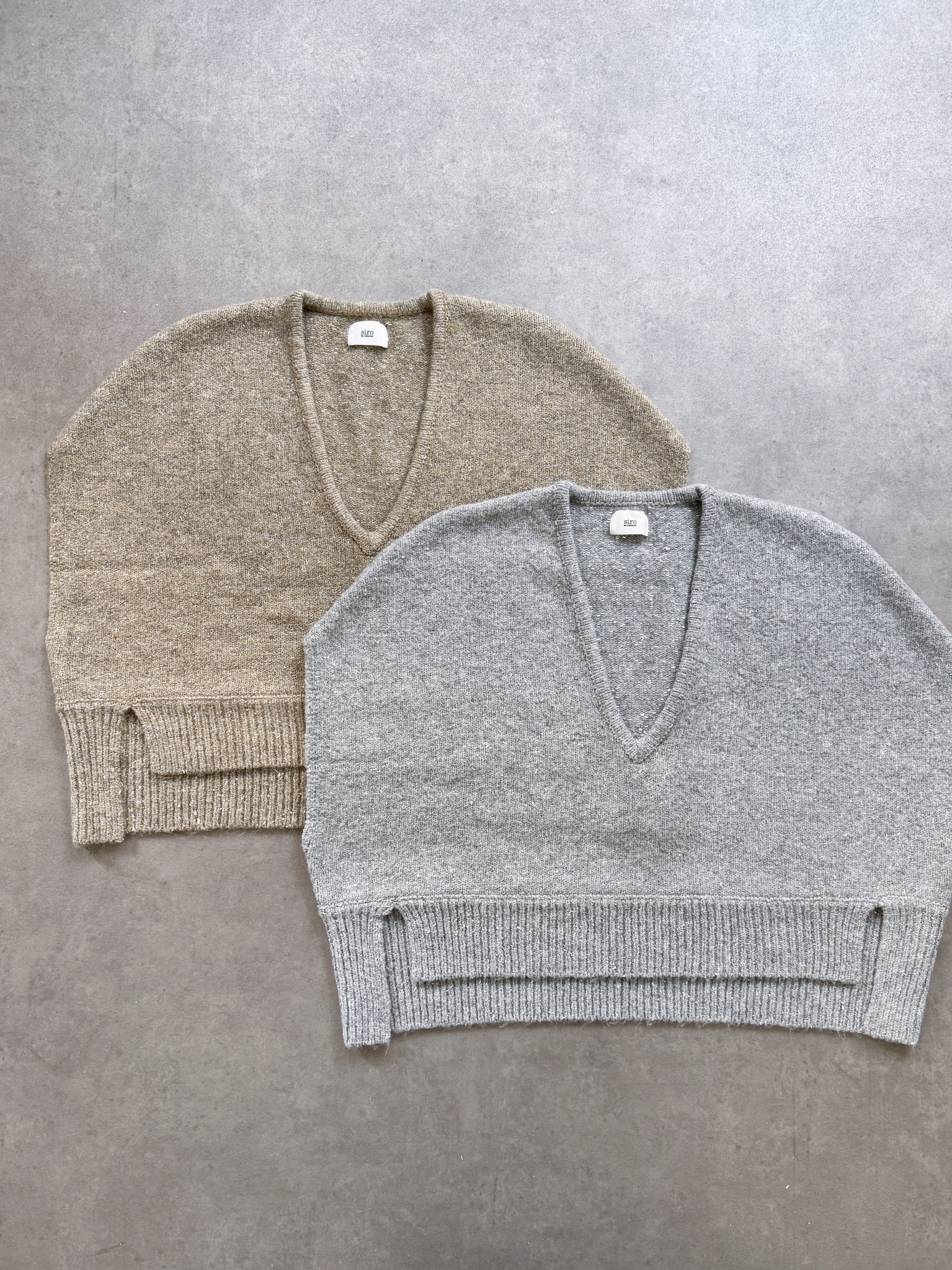 深いVネックが都連鈍感があり首周りをすっきりと見せてくれます。