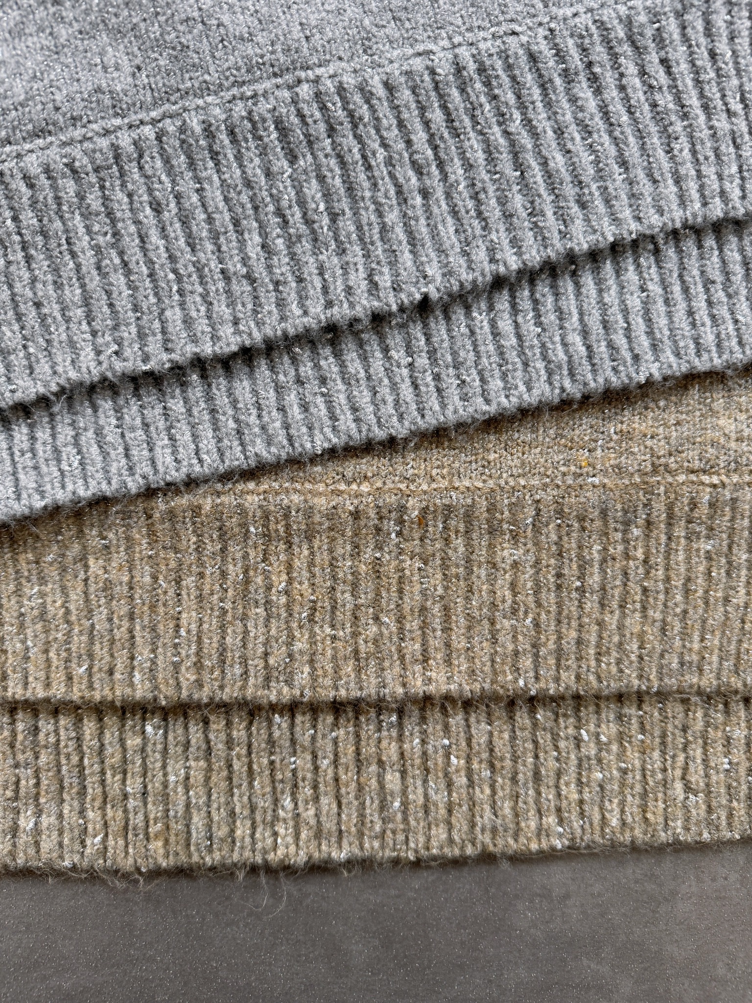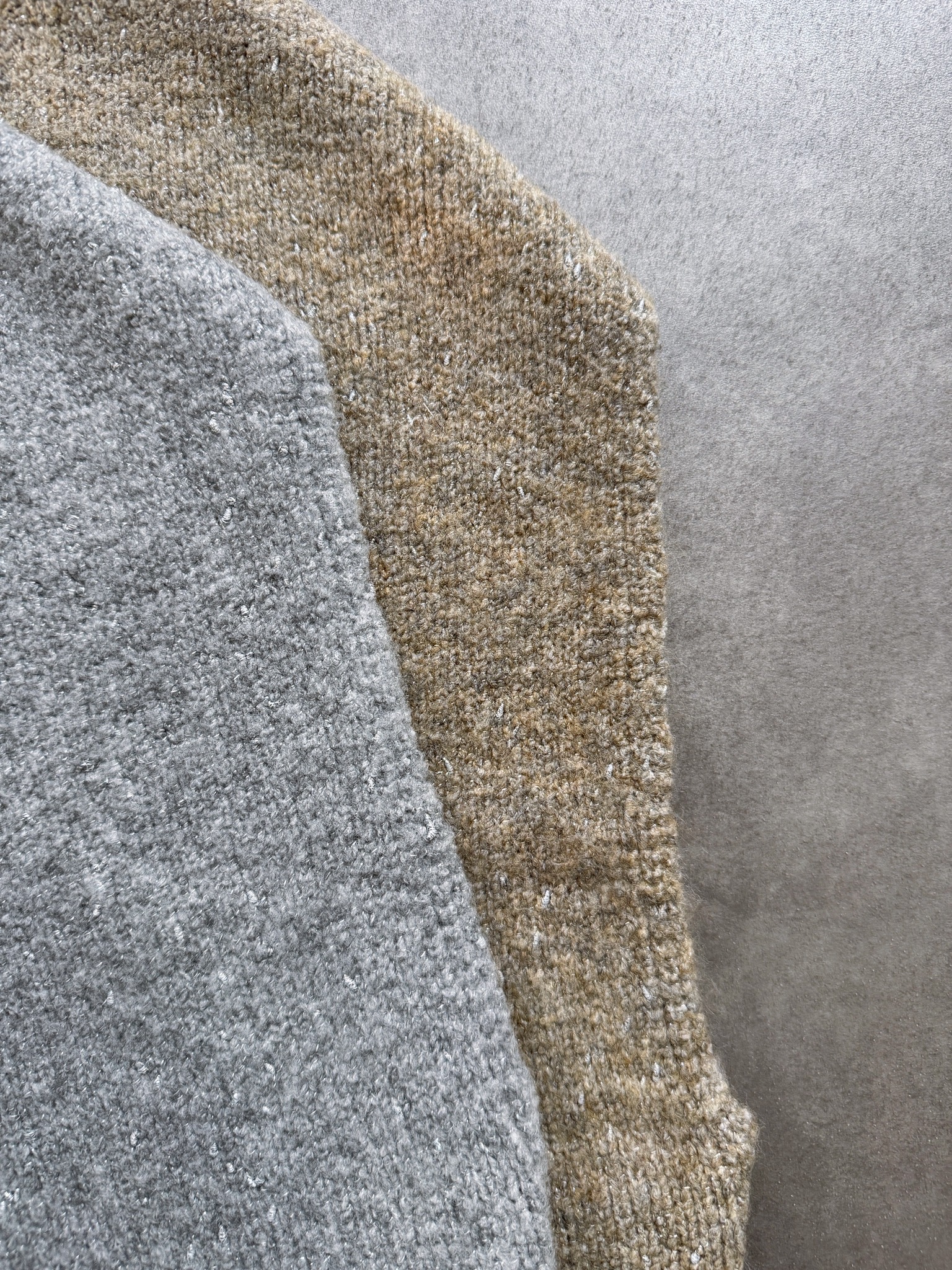 ラメ糸をMIXした華やかな表情が魅力のニットベスト。