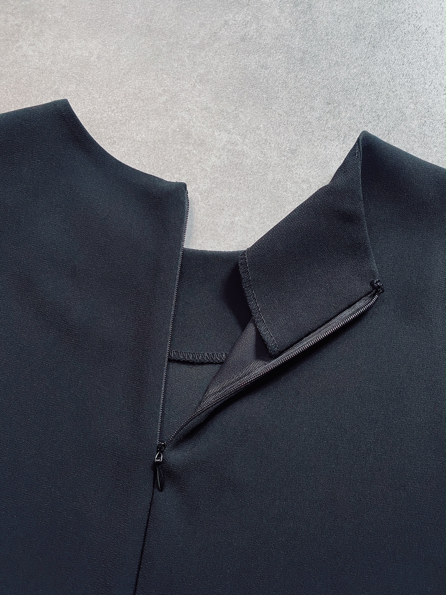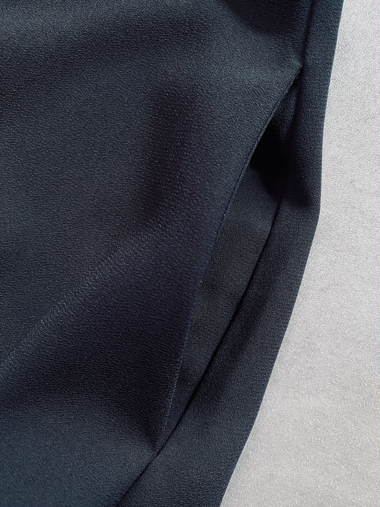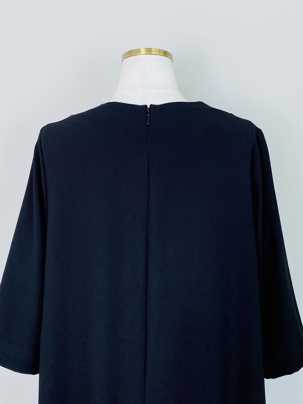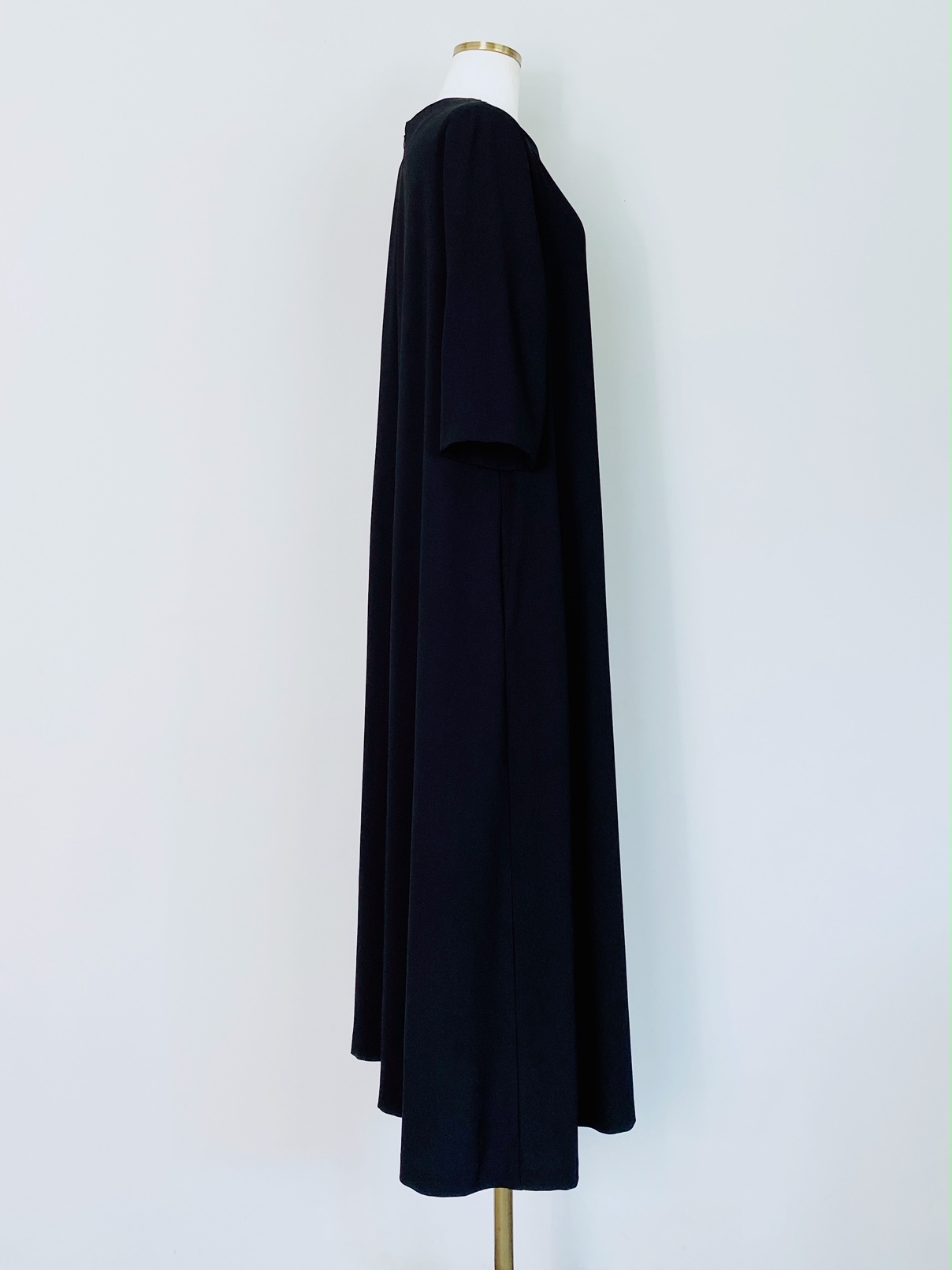 さらりとしたタッチとほど良い光沢感が特徴のポリエステルのジョーゼット素材を使用したAラインのワンピースです。
